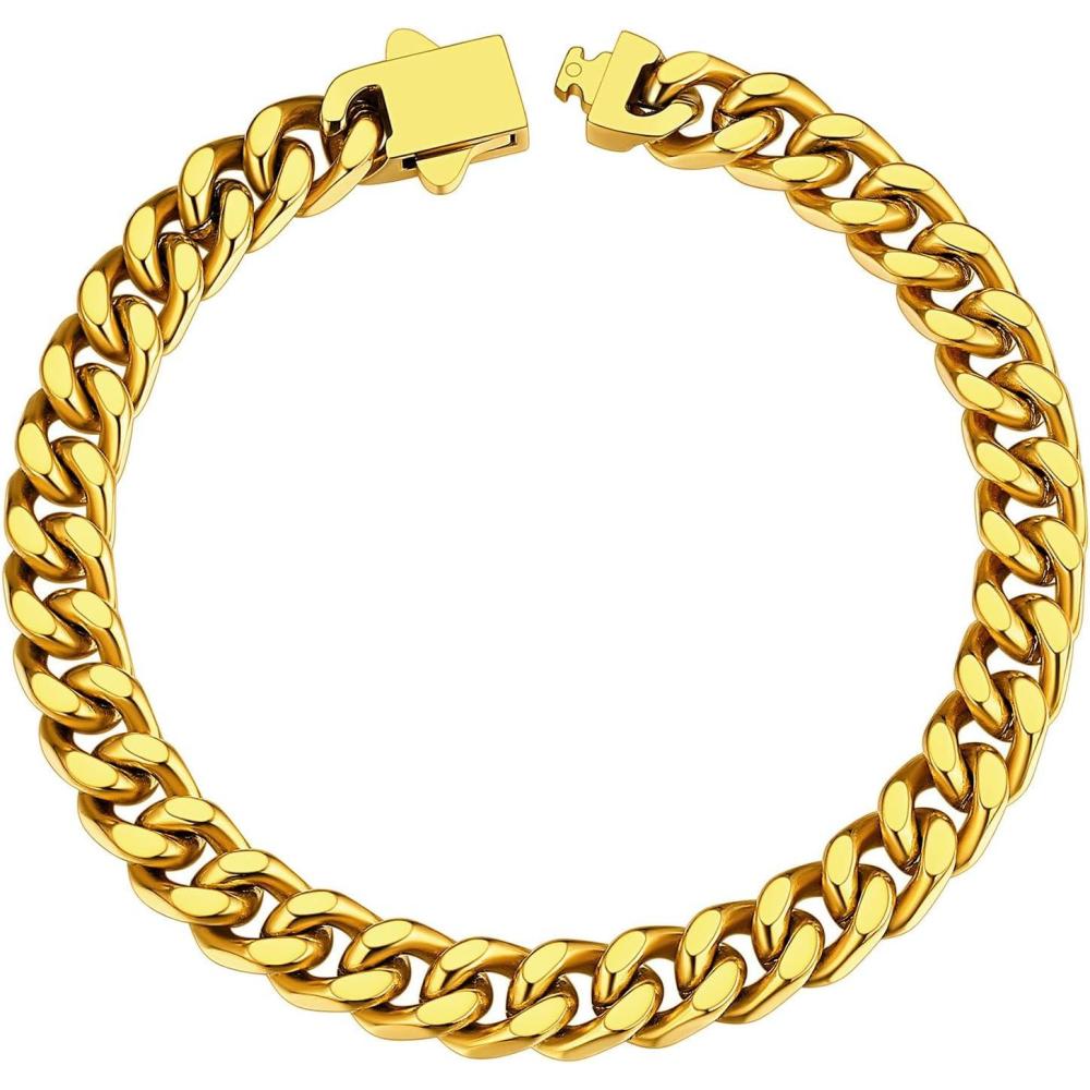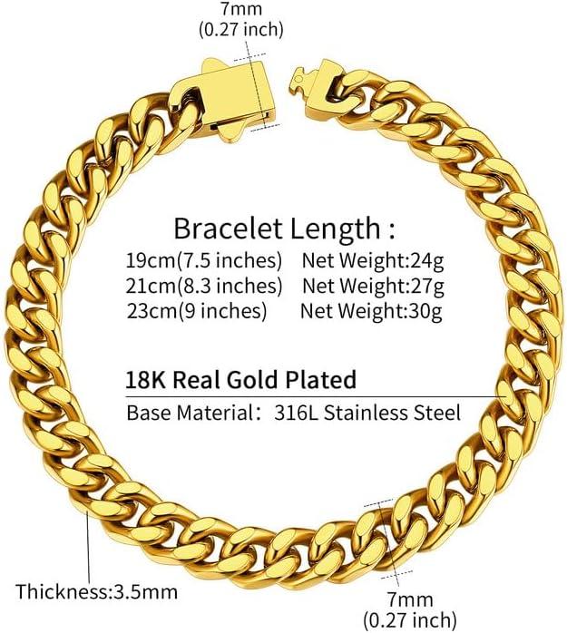 ChainsHouse Stainless Steel Cuban Link Bracelet for Men, 5mm/7mm/9mm/12mm Width, 7.5″/8.3″/9″ Length, Black/18K Gold Plated Chain Wrist Bracelets for Men, with Gift Box(c. 7mm width-gold)
