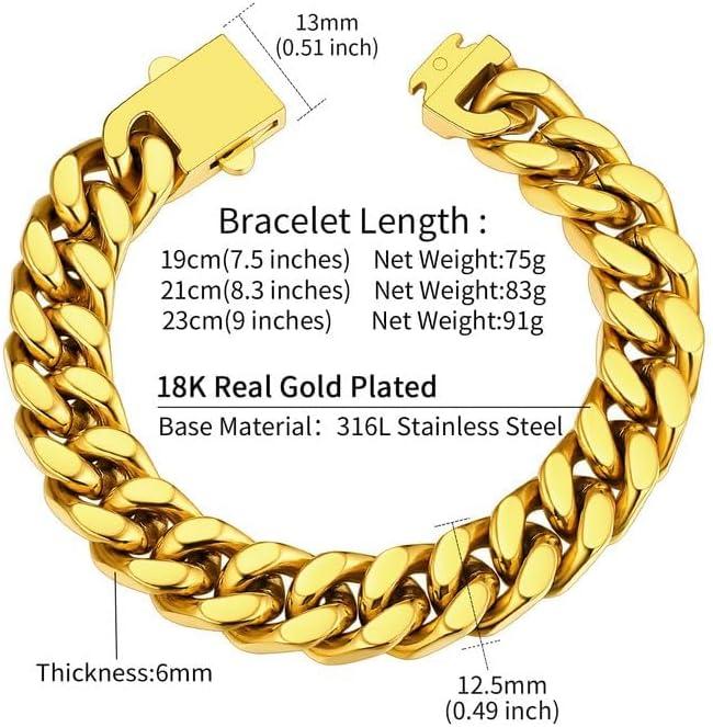 ChainsHouse Stainless Steel Cuban Link Bracelet for Men, 5mm/7mm/9mm/12mm Width, 7.5″/8.3″/9″ Length, Black/18K Gold Plated Chain Wrist Bracelets for Men, with Gift Box(d. 12mm width-gold)