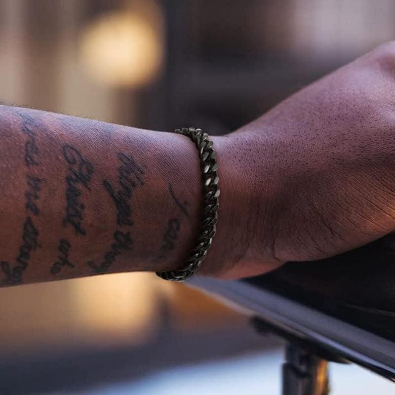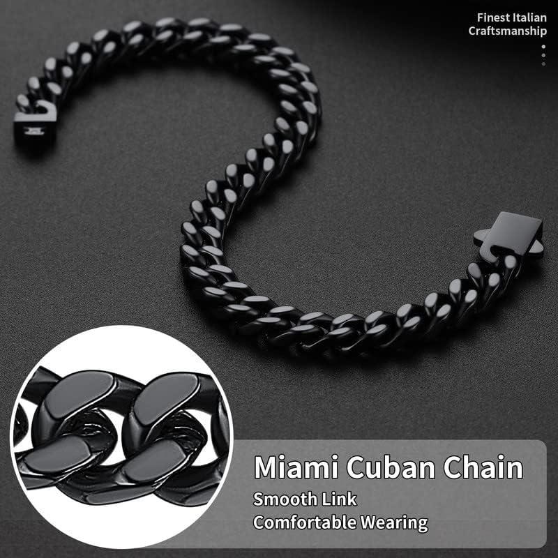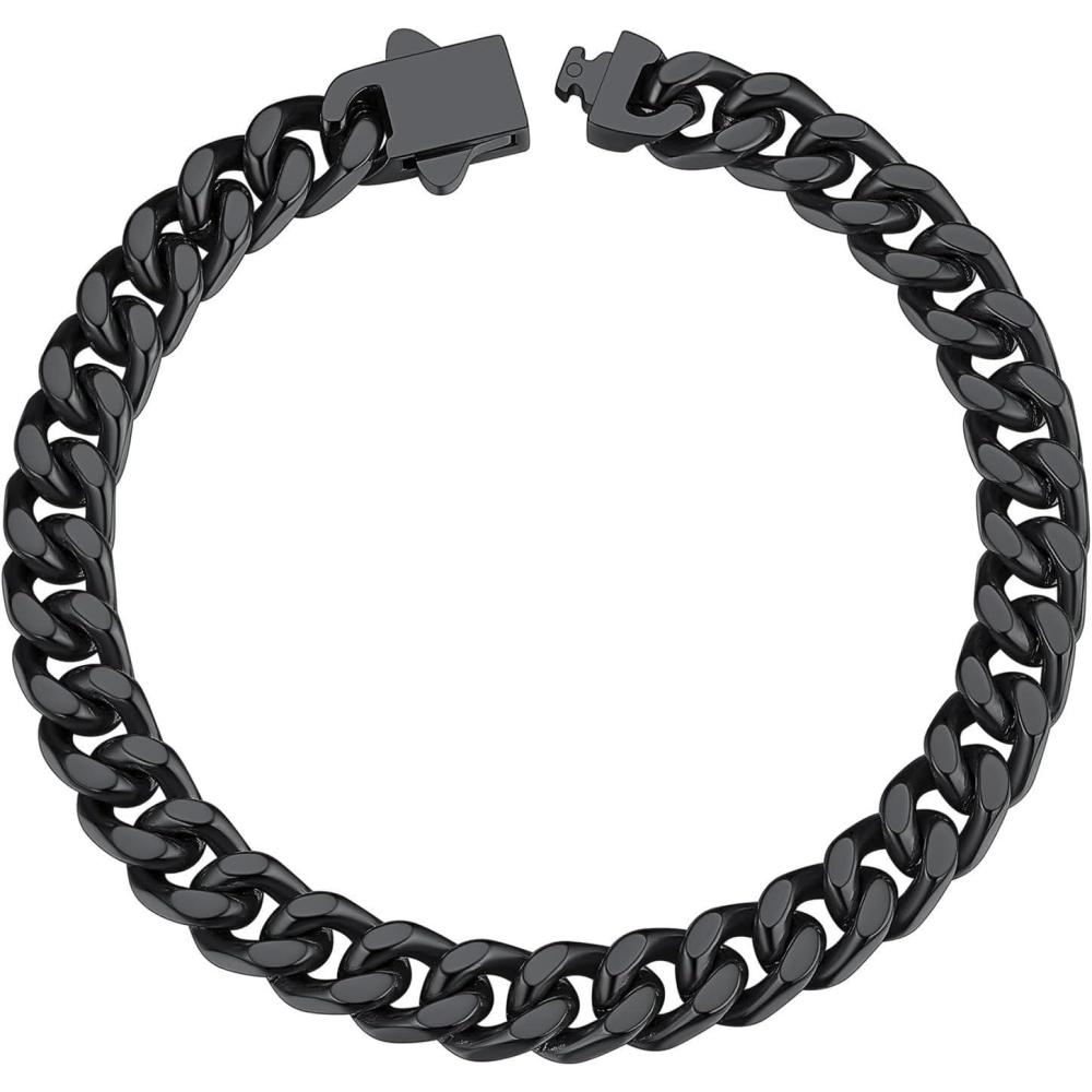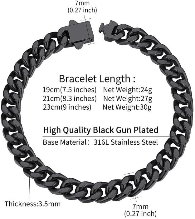 ChainsHouse Stainless Steel Cuban Link Bracelet for Men, 5mm/7mm/9mm/12mm Width, 7.5″/8.3″/9″ Length, Black/18K Gold Plated Chain Wrist Bracelets for Men, with Gift Box(e. 7mm width-black)