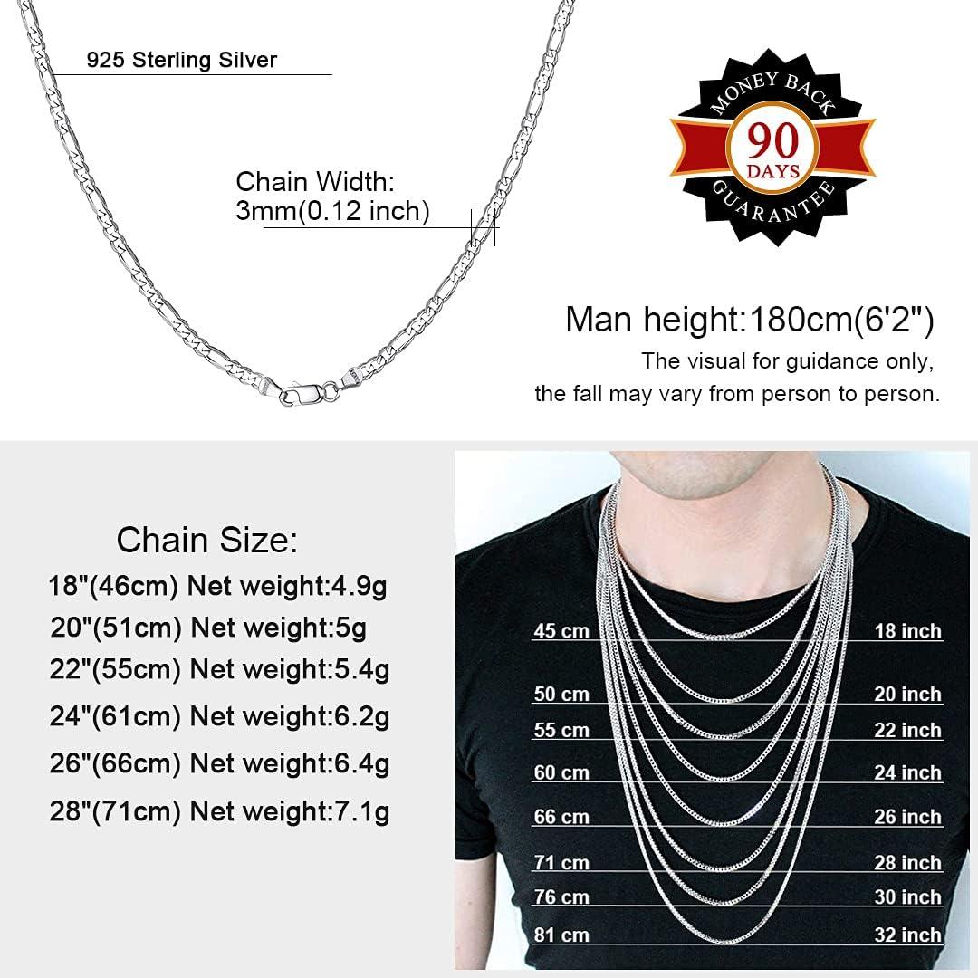 ChainsHouse Sterling Silver Necklace, Cuban/Figaro/Twisted Rope/Rolo/Box Chain, No Tarnish Mens Women Jewelry, 14″-30″, Send Gift Box(B-Silver-3mm-Figaro)