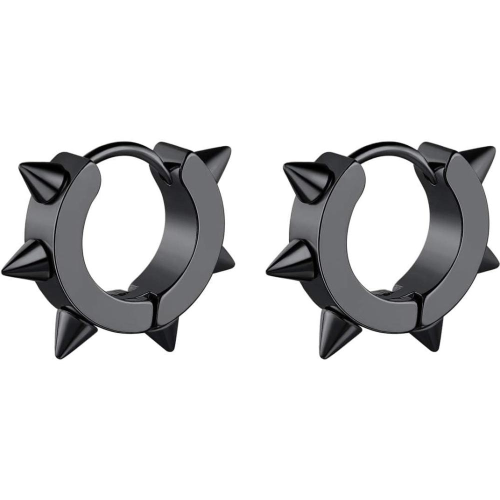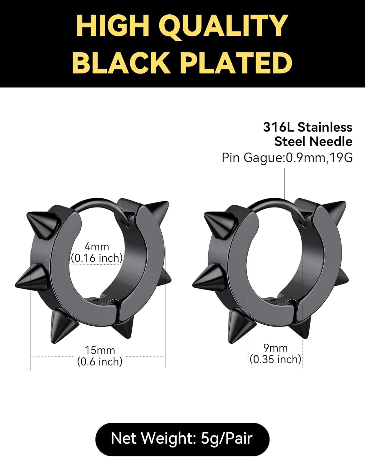 ChainsHouse Stud Earrings for Men Women,316L Stainless Steel/14K Gold/Black Plated Metal, Punk Hypoallergenic Surgical Huggie Hoop Earrings Mens Jewelry Piercing Hoop Earrings(D: Black-Spike(1 Pair))