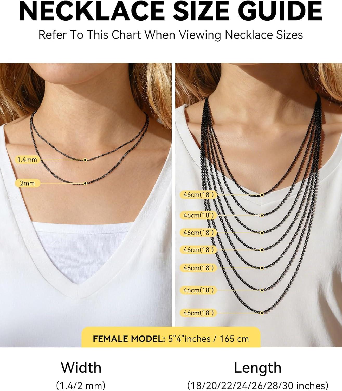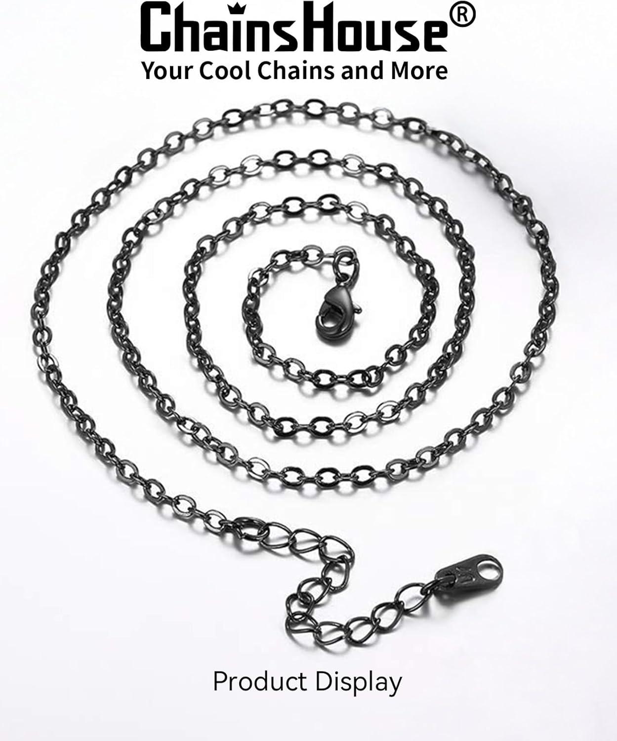 ChainsHouse Thin Rolo Chain Necklaces for Women Men, 1.4MM/2MM Cable Chains with 5cm Extender Chain, Stainless Steel/Black/14K Gold/Rose Gold Plated Sturdy Women’s Chain Necklaces, 16-30 Inch(H-2mm-black)