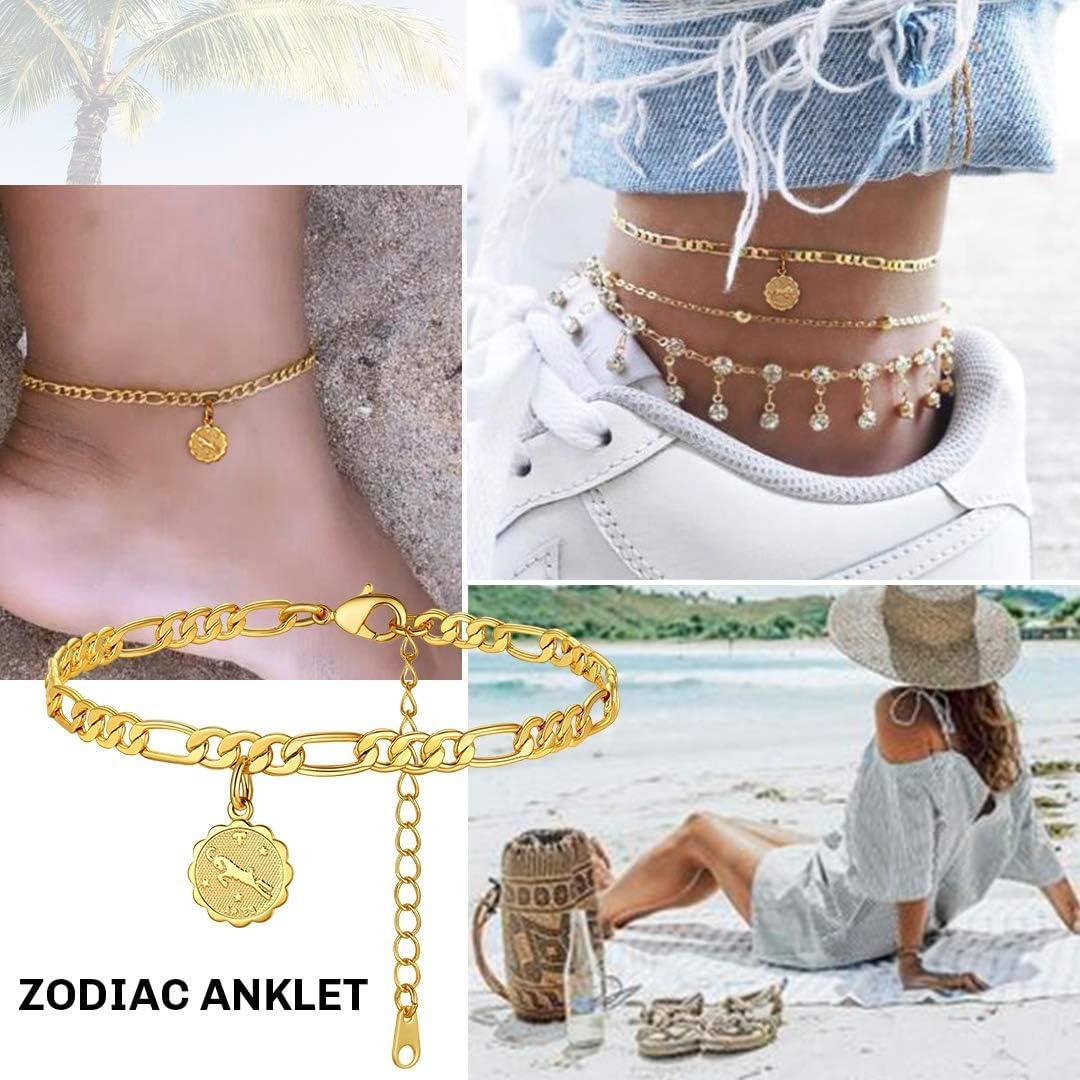 Gold Anklet Chain Barefoot for Women 4.5mm Charm Boho Beach Foot Chains Jewelry Pisces Constellation Figaro Ankle