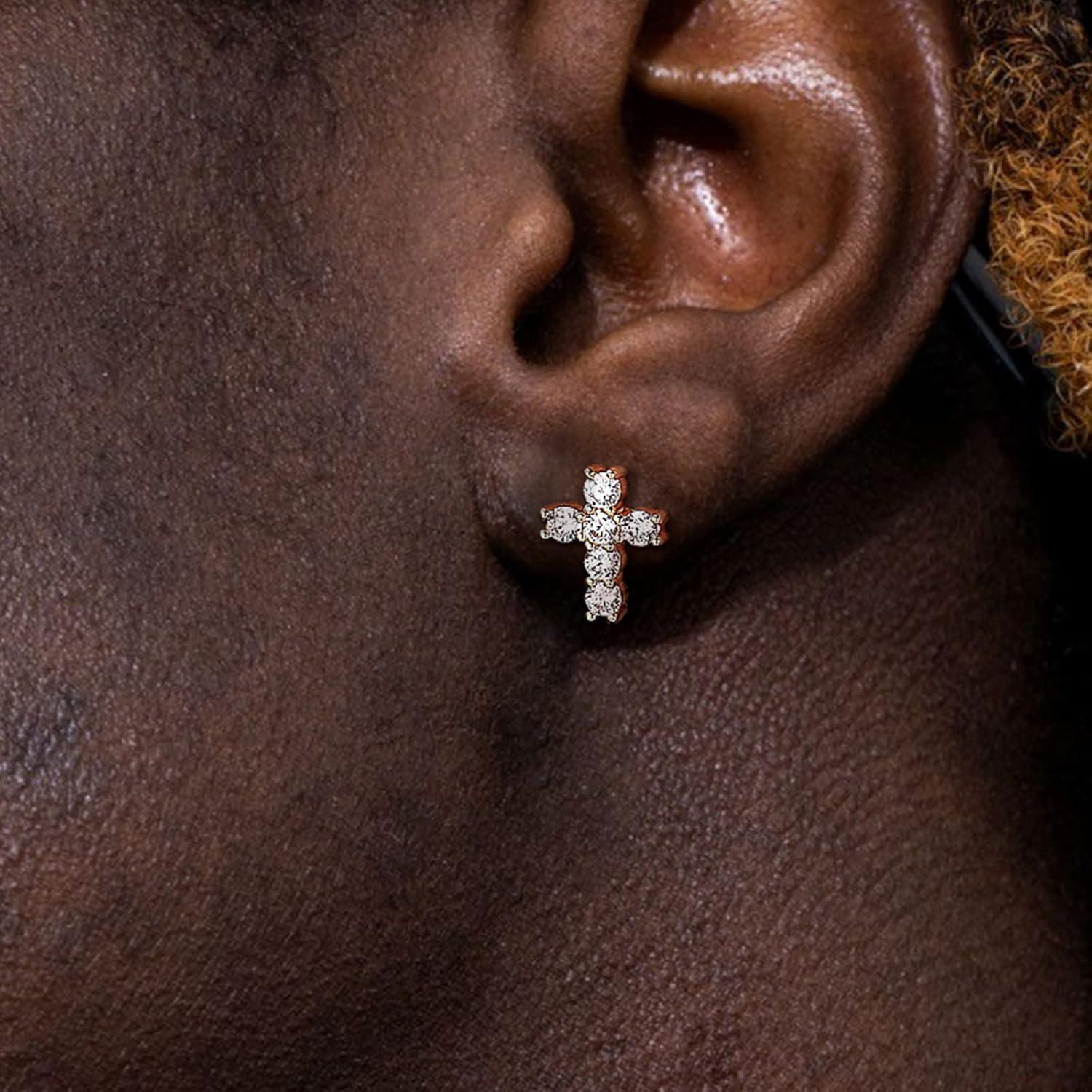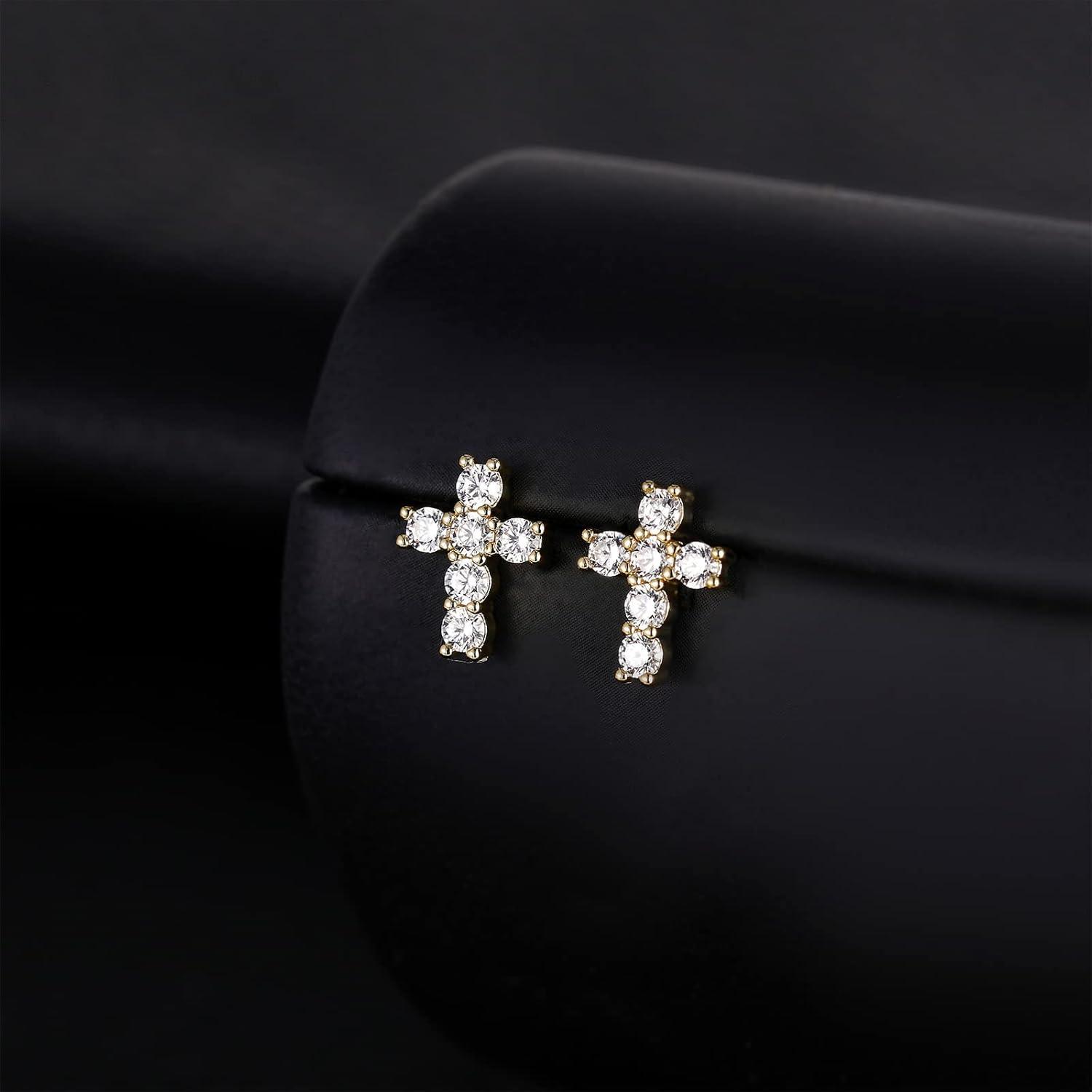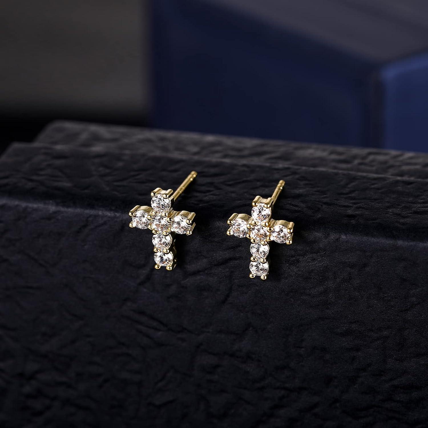 TRUMIUM Cross Earrings for Men Women 925 Sterling Silver Dangle Earrings Hypoallergenic Silver Gold Stud Cubic Zirconia(Cross Stud-Gold)