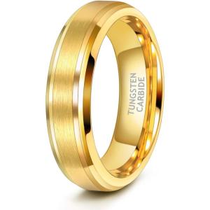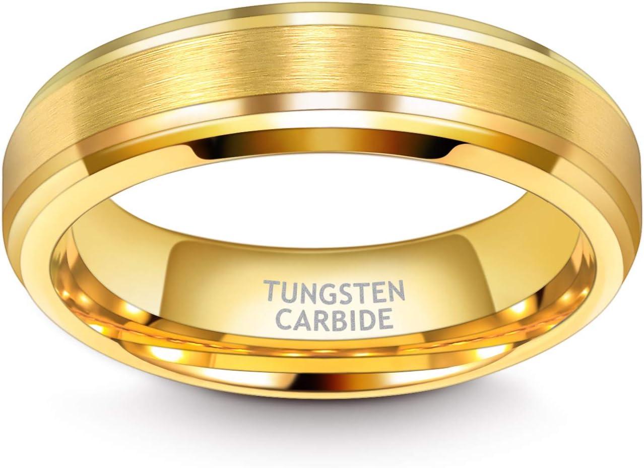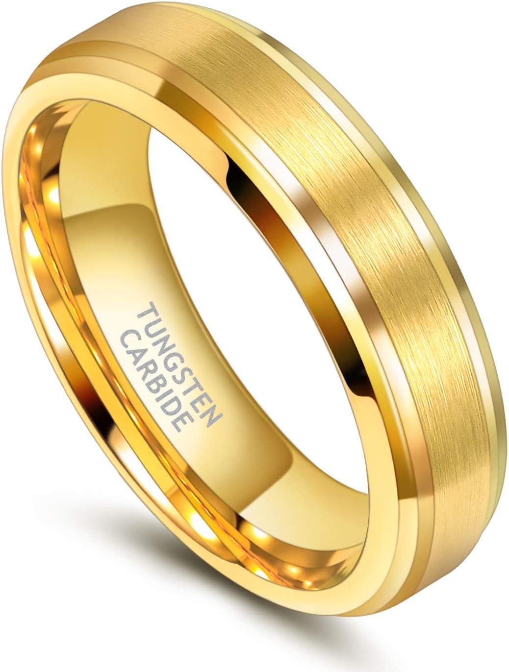 TRUMIUM 6mm 8mm Mens Womens 24K Gold Plated Tungsten Wedding Ring Band Brush Finish Scratch Resistant Size 5-14(6mm 24k gold plated)