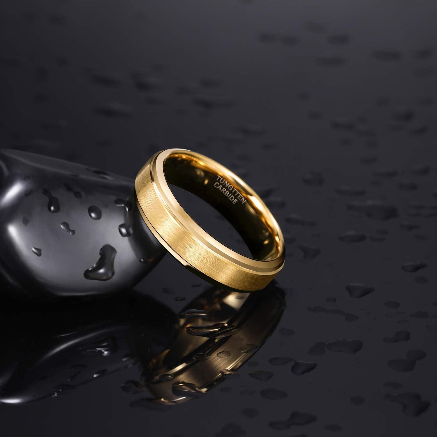 TRUMIUM 6mm 8mm Tungsten Rings for Men Women Black Wedding Band 24K Gold Plated/Rose Gold Plated Step Edges Comfort Fit Size 6-13(6mm Sandstone)