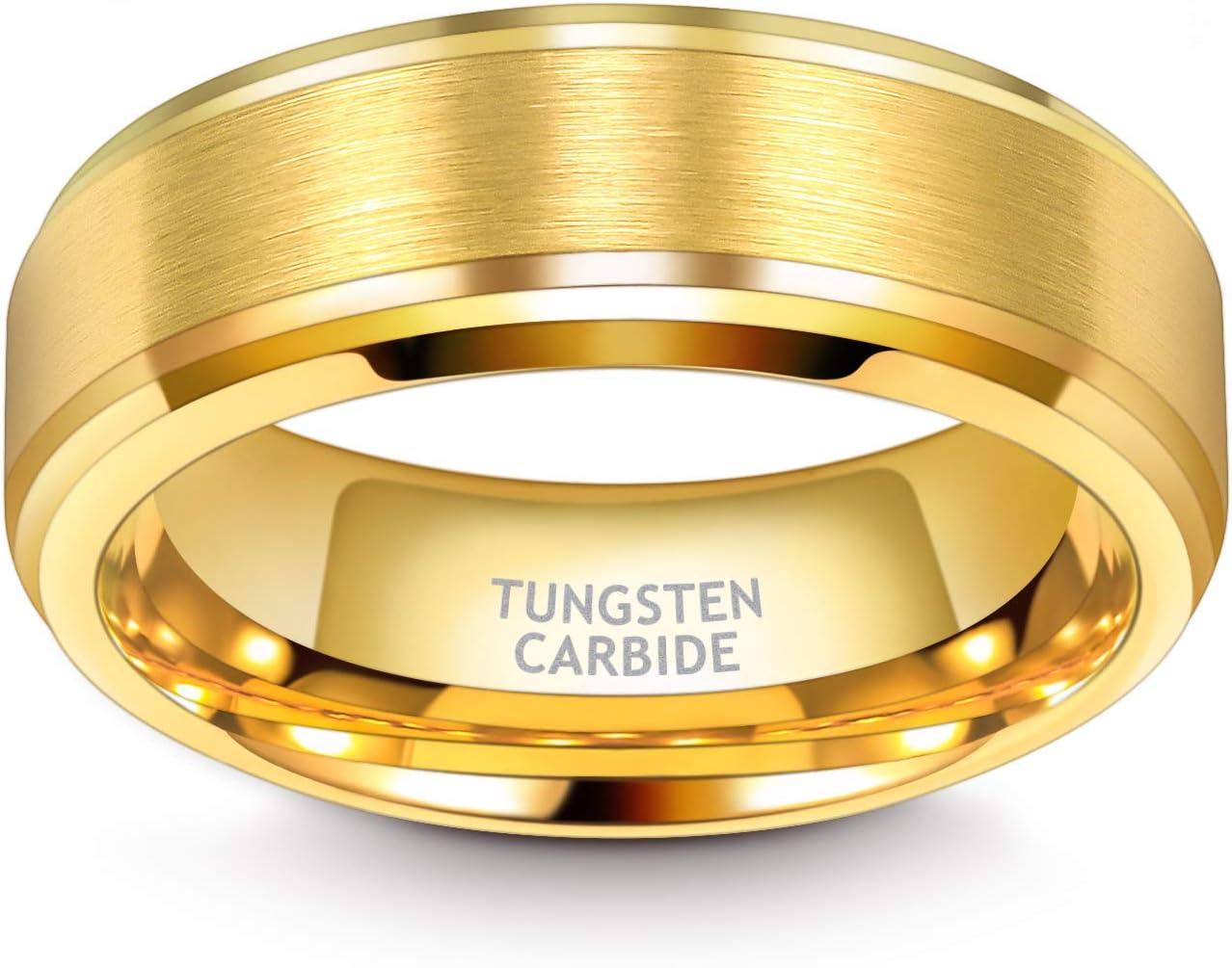 TRUMIUM 6mm 8mm Mens Womens 24K Gold Plated Tungsten Wedding Ring Band Brush Finish Scratch Resistant Size 5-14(8mm 24k gold plated)