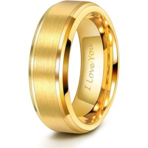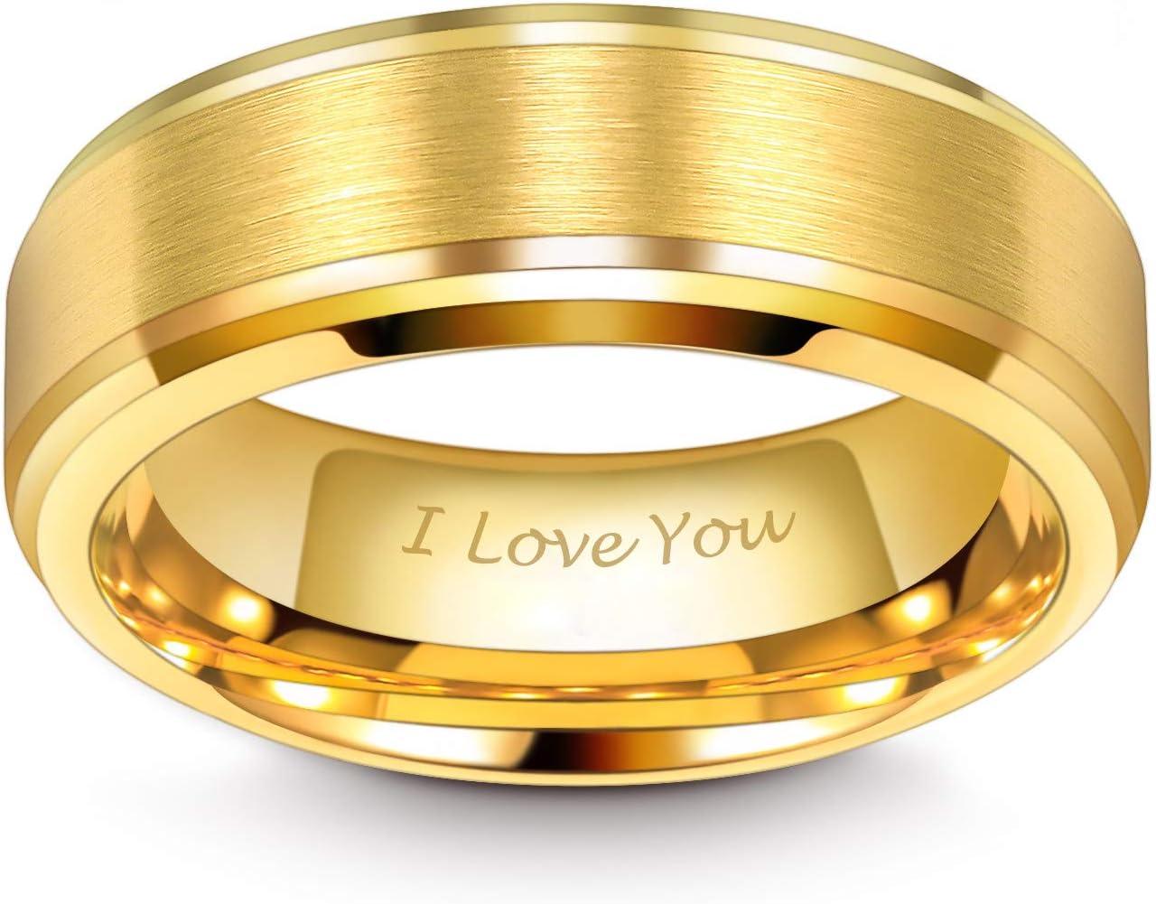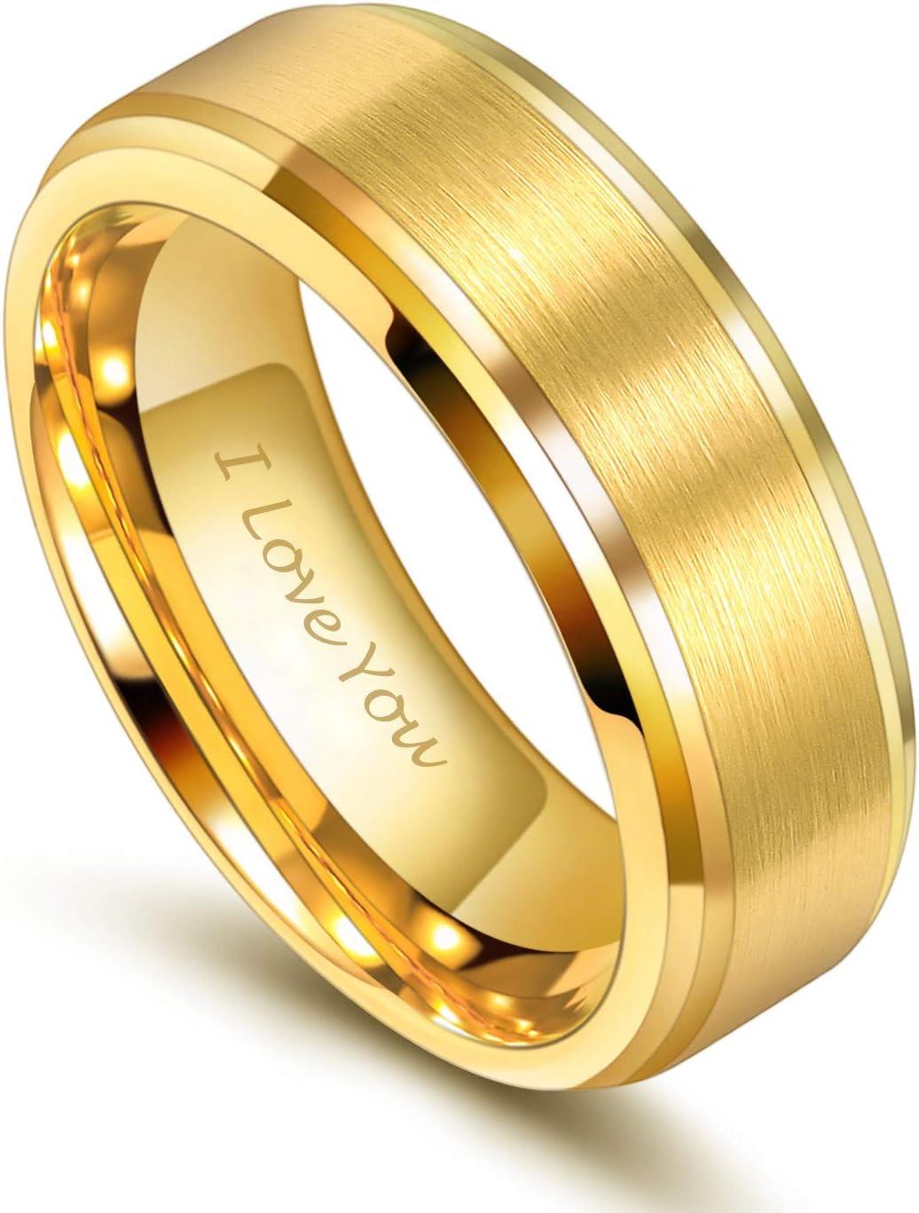 TRUMIUM 6mm 8mm Mens Womens 24K Gold Plated Tungsten Wedding Ring Band Brush Finish Scratch Resistant Size 5-14(8mm I Love You Engraved)