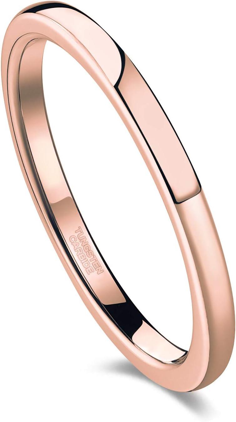 TRUMIUM 2mm 4mm 6mm 8mm Tungsten Wedding Band Ring for Men Women Silver/Rose Gold Plated/Rainbow/Gold Plated Domed High Polish Engagement Promise Rings Comfort Fit 4-15(2mm rose gold plated)