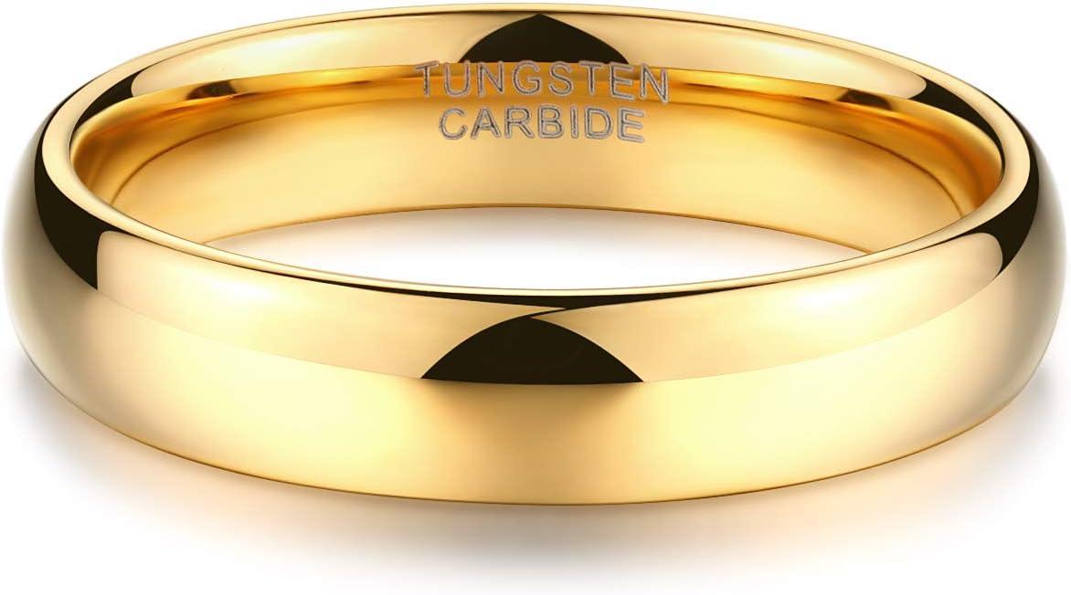 TRUMIUM 2mm 4mm 6mm 8mm Tungsten Wedding Band Ring for Men Women Silver/Rose Gold Plated/Rainbow/Gold Plated Domed High Polish Engagement Promise Rings Comfort Fit 4-15(4mm 24k gold plated)