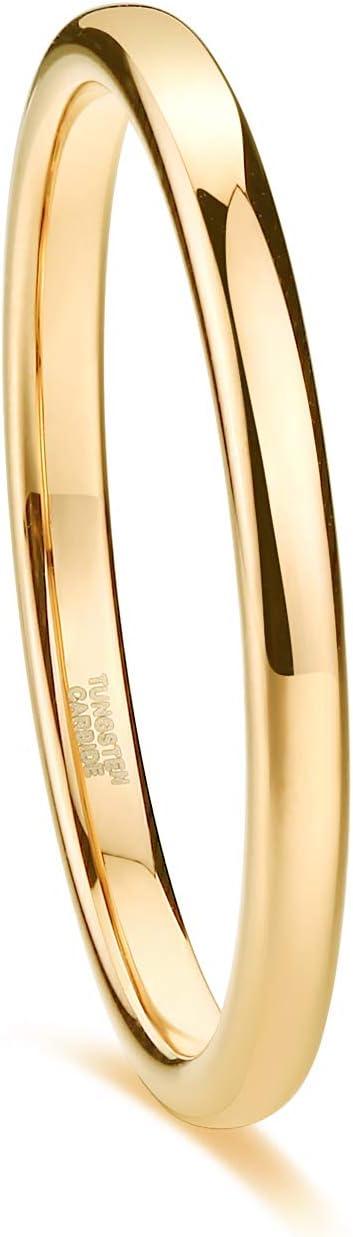 TRUMIUM 2mm 4mm 6mm 8mm Tungsten Wedding Band Ring for Men Women Silver/Rose Gold Plated/Rainbow/Gold Plated Domed High Polish Engagement Promise Rings Comfort Fit 4-15(2mm 24k gold plated)