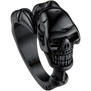 ChainsHouse Skull Rings for Men, Stainless Steel/Black Plated Gothic Rings, Skeleton Cocktail Party Biker Ring, Offer Custom Service, Size 7-14, Send Gift Box(A: 2-black-No Custom)