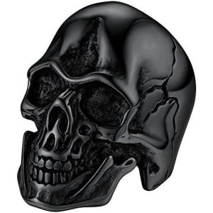 ChainsHouse Skull Rings for Men, Stainless Steel/Black Plated Gothic Rings, Skeleton Cocktail Party Biker Ring, Offer Custom Service, Size 7-14, Send Gift Box(H: Skull Head-Black-No Custom)