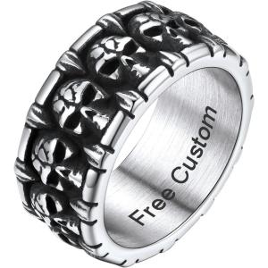 ChainsHouse Skull Rings for Men, Stainless Steel/Black Plated Gothic Rings, Skeleton Cocktail Party Biker Ring, Offer Custom Service, Size 7-14, Send Gift Box(A: Engrave-stainless-Custom)