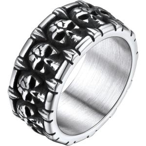 ChainsHouse Skull Rings for Men, Stainless Steel/Black Plated Gothic Rings, Skeleton Cocktail Party Biker Ring, Offer Custom Service, Size 7-14, Send Gift Box(A: stainless-No Custom)