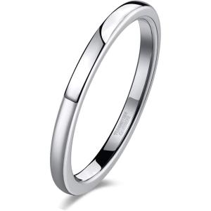 TRUMIUM 2mm 4mm 6mm 8mm Tungsten Wedding Band Ring for Men Women Silver/Rose Gold Plated/Rainbow/Gold Plated Domed High Polish Engagement Promise Rings Comfort Fit 4-15(2mm silver plated)