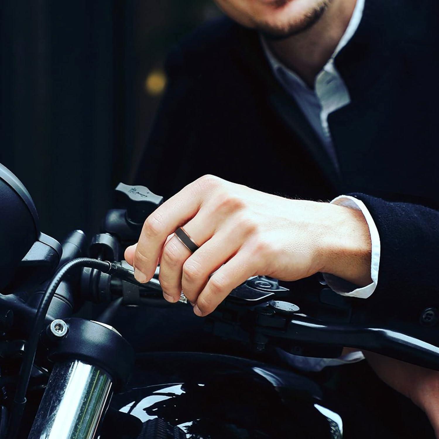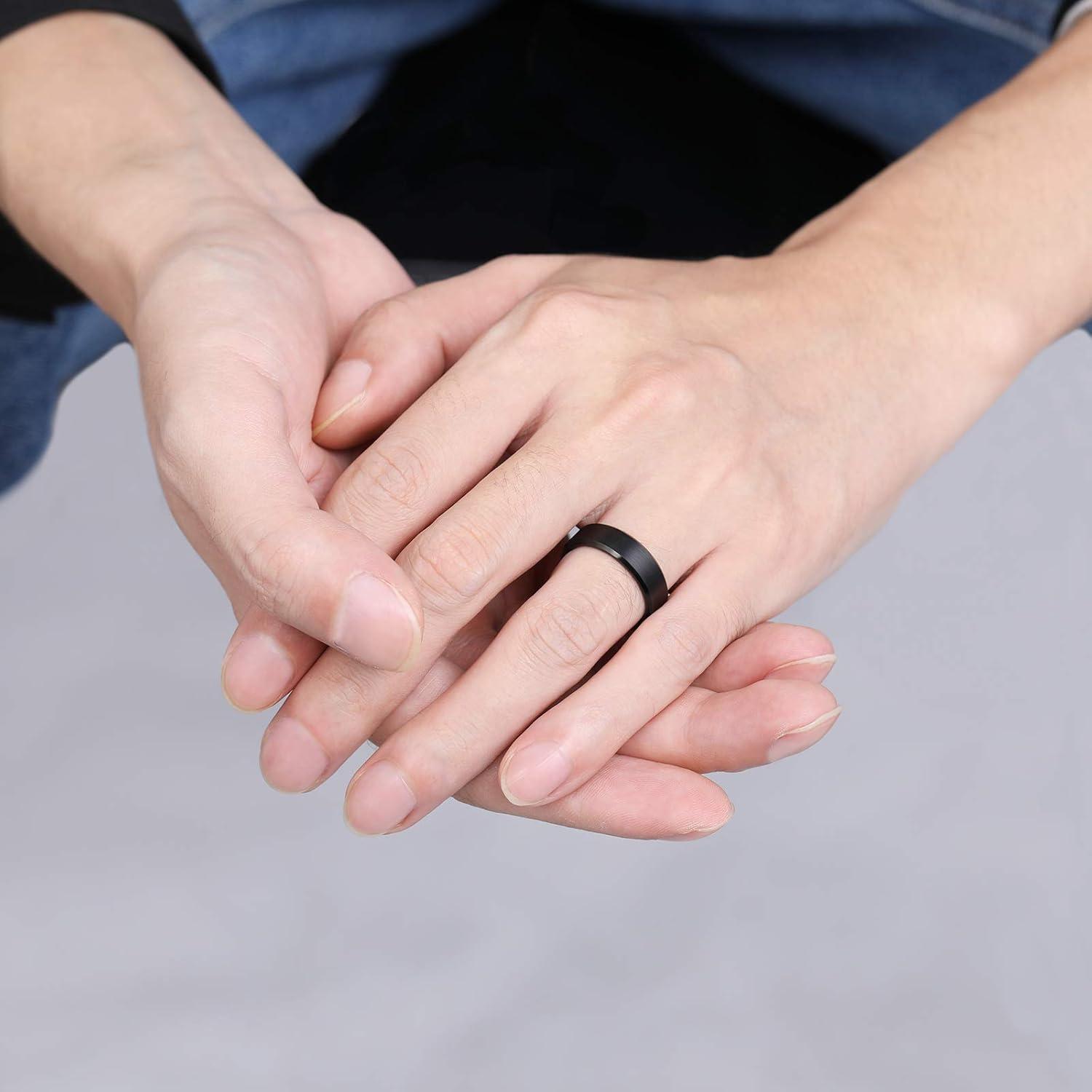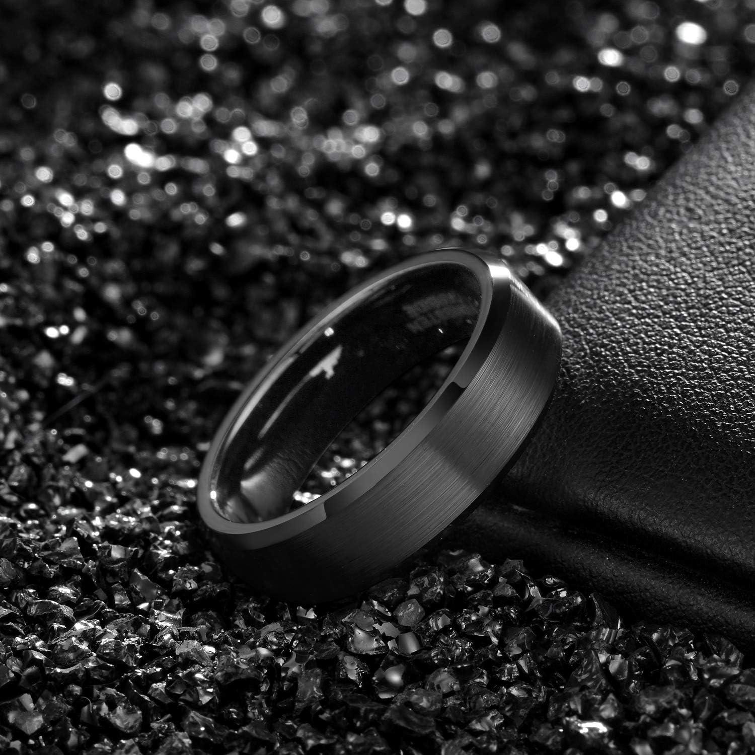 TRUMIUM 2mm 4mm 6mm 8mm 10mm Tungsten Ring Wedding Band for Women Men Bevel Edges Brushed Comfort Fit Size 4-15(Black 8mm)