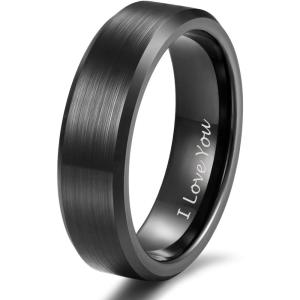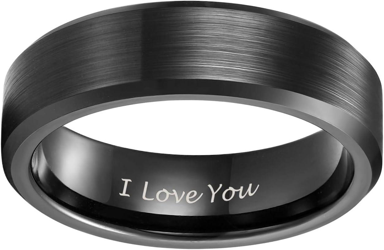 TRUMIUM 2mm 4mm 6mm 8mm 10mm Tungsten Ring Wedding Band for Women Men Bevel Edges Brushed Comfort Fit Size 4-15(Black 6mm I Love You)