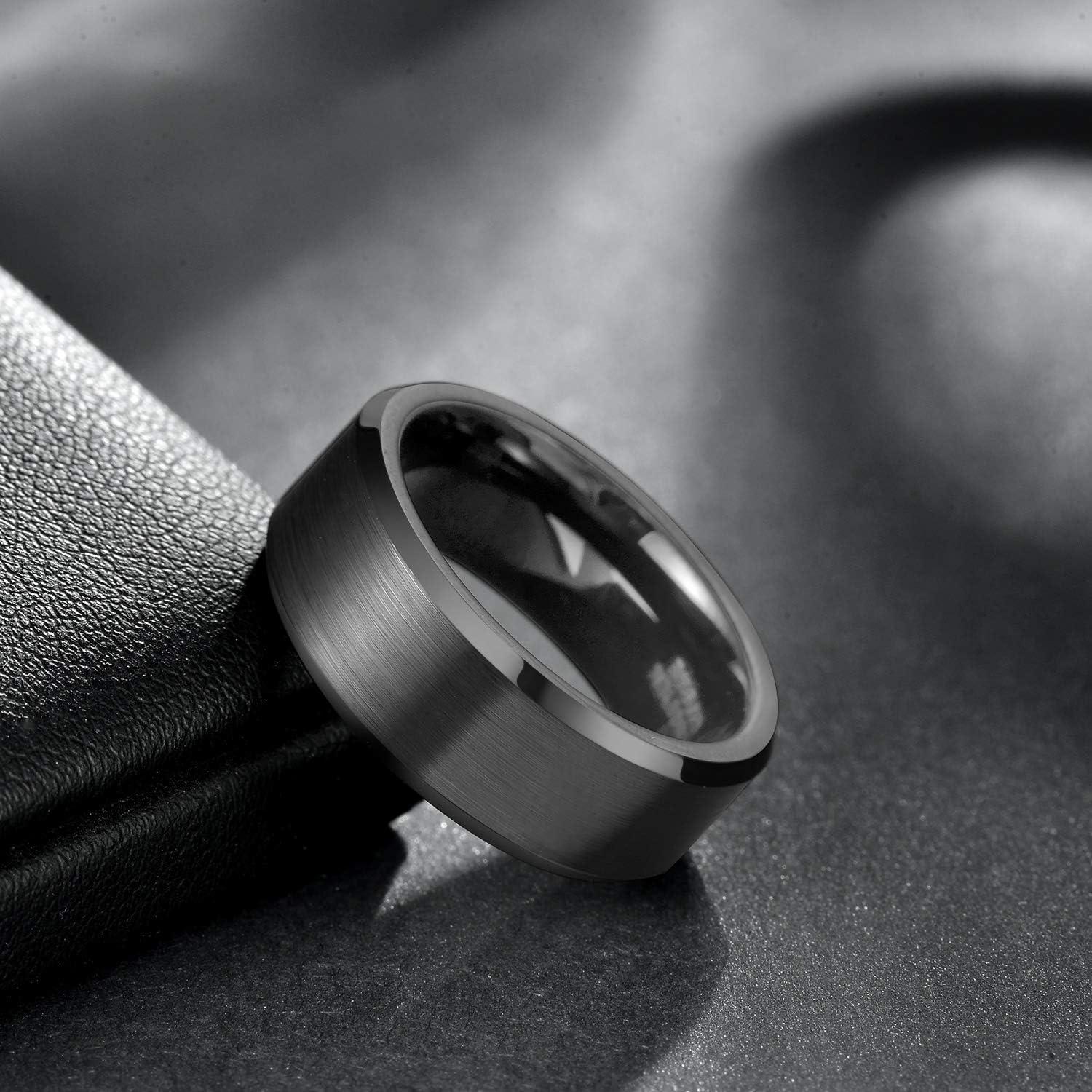 TRUMIUM 2mm 4mm 6mm 8mm 10mm Tungsten Ring Wedding Band for Women Men Bevel Edges Brushed Comfort Fit Size 4-15(Black 10mm)
