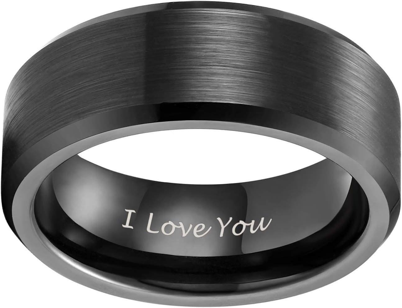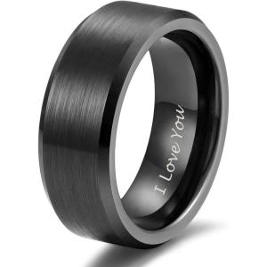 TRUMIUM 2mm 4mm 6mm 8mm 10mm Tungsten Ring Wedding Band for Women Men Bevel Edges Brushed Comfort Fit Size 4-15(Black 8mm I Love You)