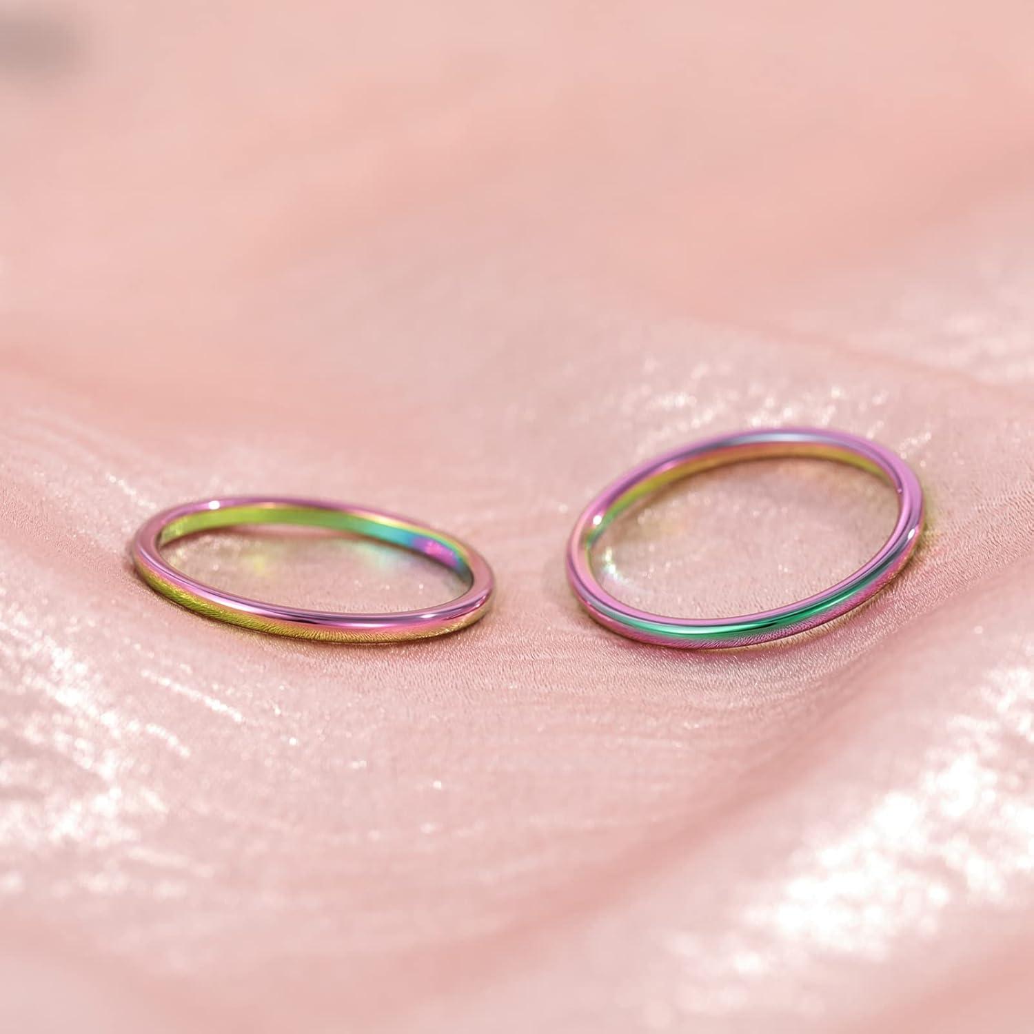 TRUMIUM 2mm 4mm 6mm 8mm Tungsten Wedding Band Ring for Men Women Silver/Rose Gold Plated/Rainbow/Gold Plated Domed High Polish Engagement Promise Rings Comfort Fit 4-15(Tungsten-Rainbow-2mm)