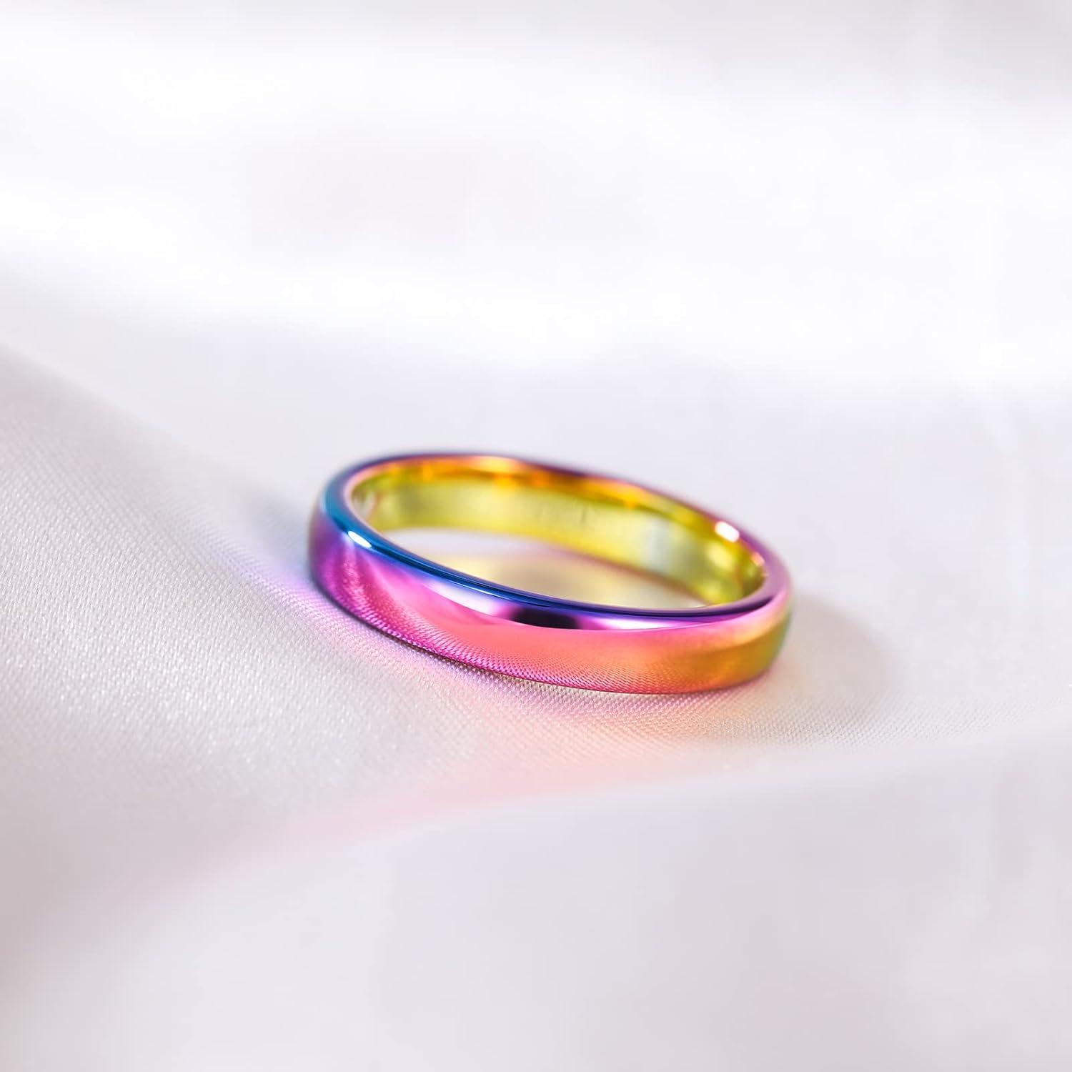 TRUMIUM 2mm 4mm 6mm 8mm Tungsten Wedding Band Ring for Men Women Silver/Rose Gold Plated/Rainbow/Gold Plated Domed High Polish Engagement Promise Rings Comfort Fit 4-15(Tungsten-Rainbow-4mm)