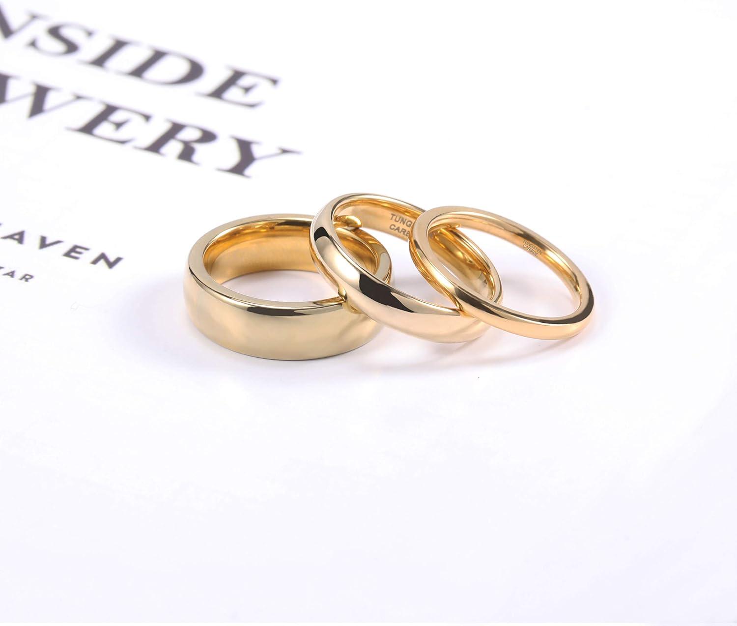 TRUMIUM 2mm 4mm 6mm 8mm Tungsten Wedding Band Ring for Men Women Silver/Rose Gold Plated/Rainbow/Gold Plated Domed High Polish Engagement Promise Rings Comfort Fit 4-15(8mm 24k gold plated)