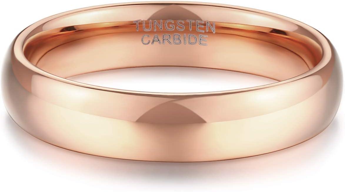 TRUMIUM 2mm 4mm 6mm 8mm Tungsten Wedding Band Ring for Men Women Silver/Rose Gold Plated/Rainbow/Gold Plated Domed High Polish Engagement Promise Rings Comfort Fit 4-15(4mm rose gold plated)