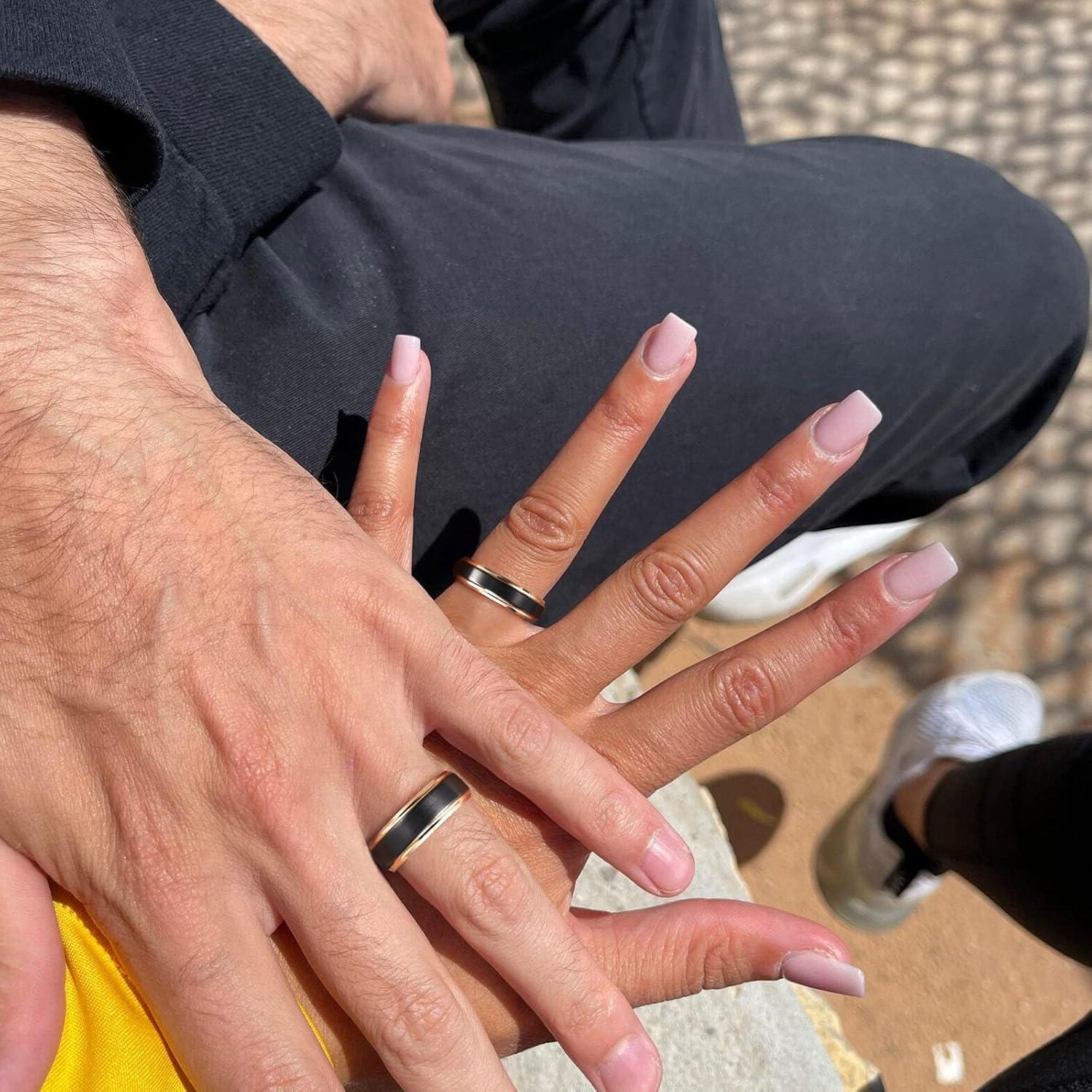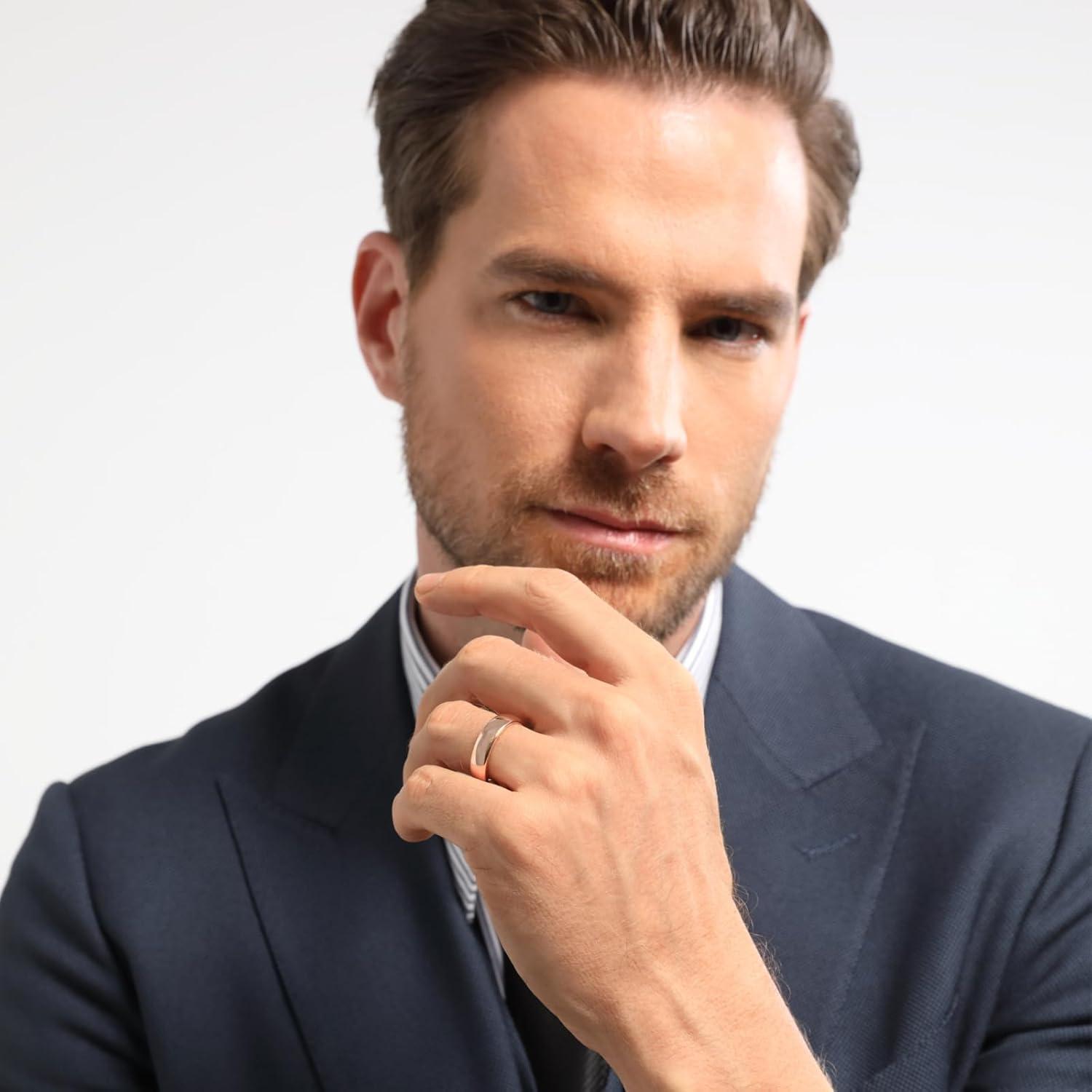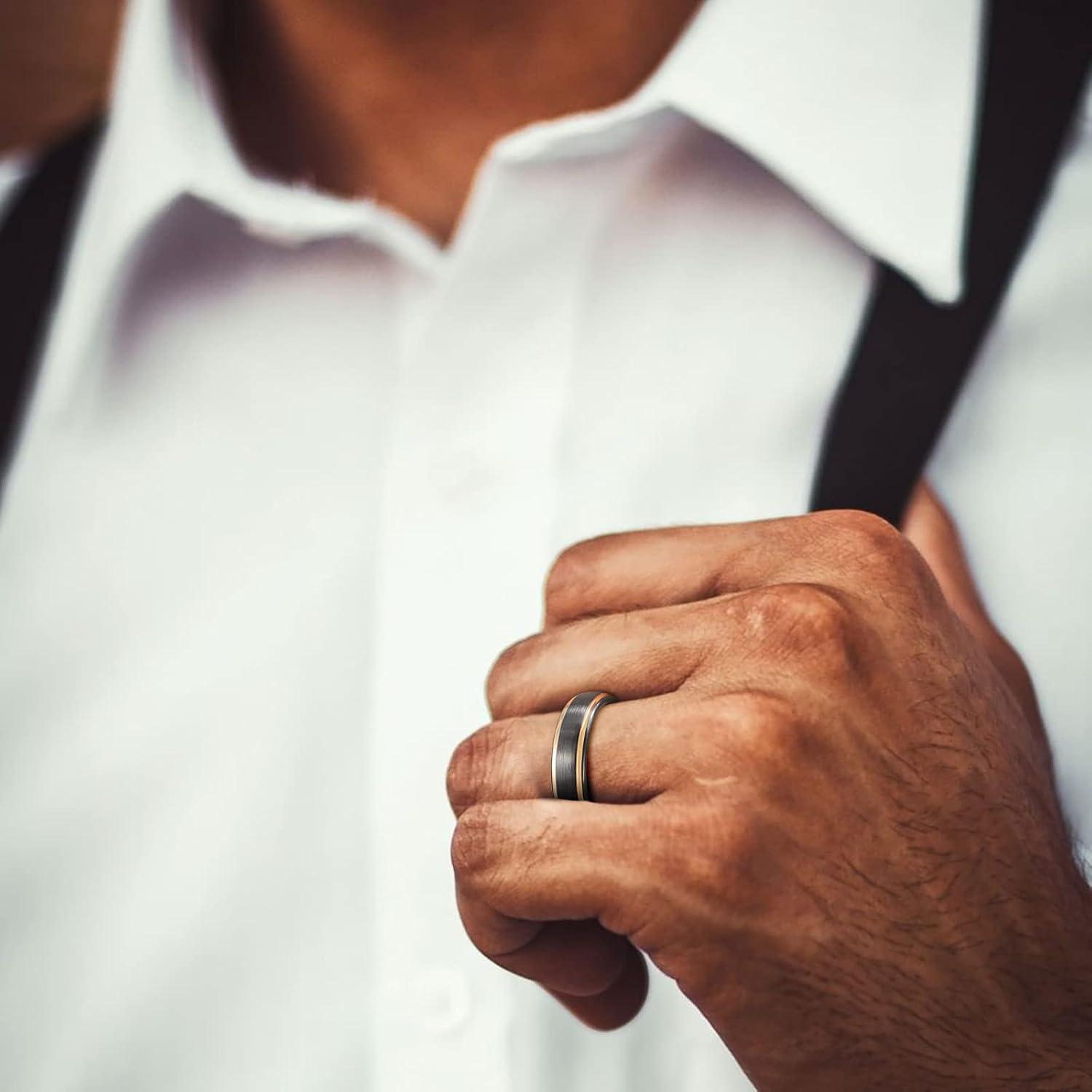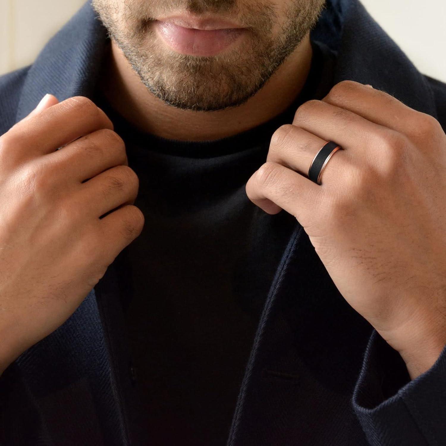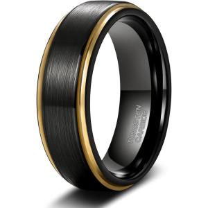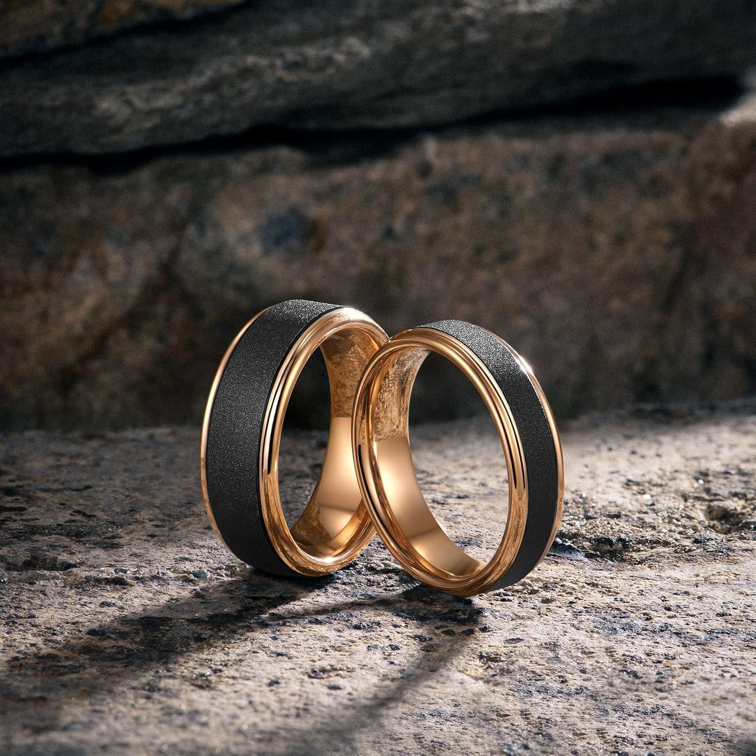 TRUMIUM 6mm 8mm Tungsten Rings for Men Women Black Wedding Band 24K Gold Plated/Rose Gold Plated Step Edges Comfort Fit Size 6-13(8mm Sandstone)