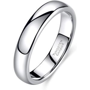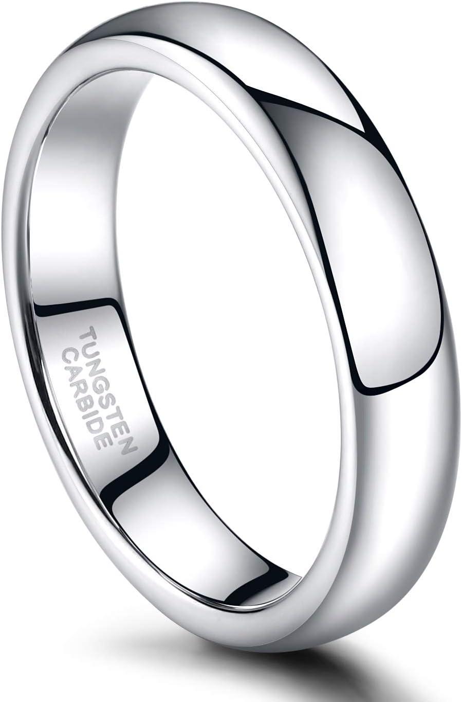 TRUMIUM 2mm 4mm 6mm 8mm Tungsten Wedding Band Ring for Men Women Silver/Rose Gold Plated/Rainbow/Gold Plated Domed High Polish Engagement Promise Rings Comfort Fit 4-15(4mm silver plated)