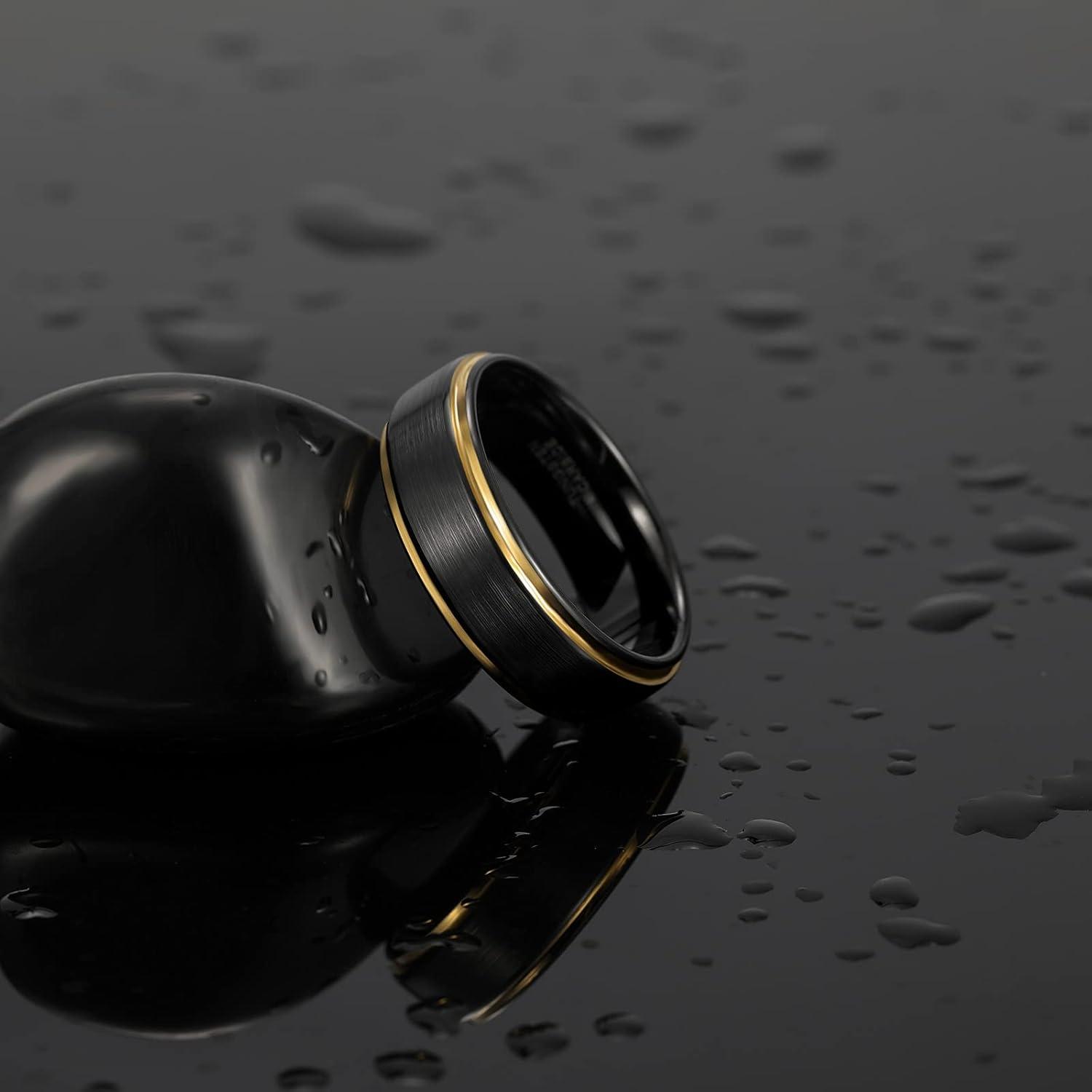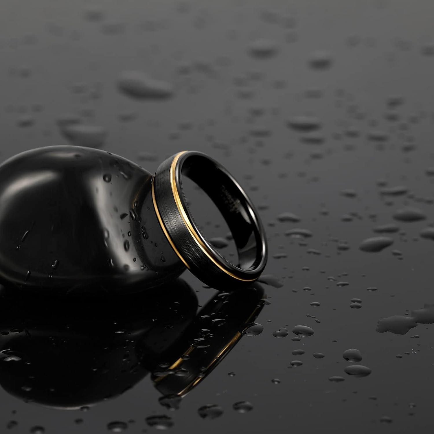 TRUMIUM 6mm 8mm Tungsten Rings for Men Women Black Wedding Band 24K Gold Plated/Rose Gold Plated Step Edges Comfort Fit Size 6-13(8mm 24k gold plated)