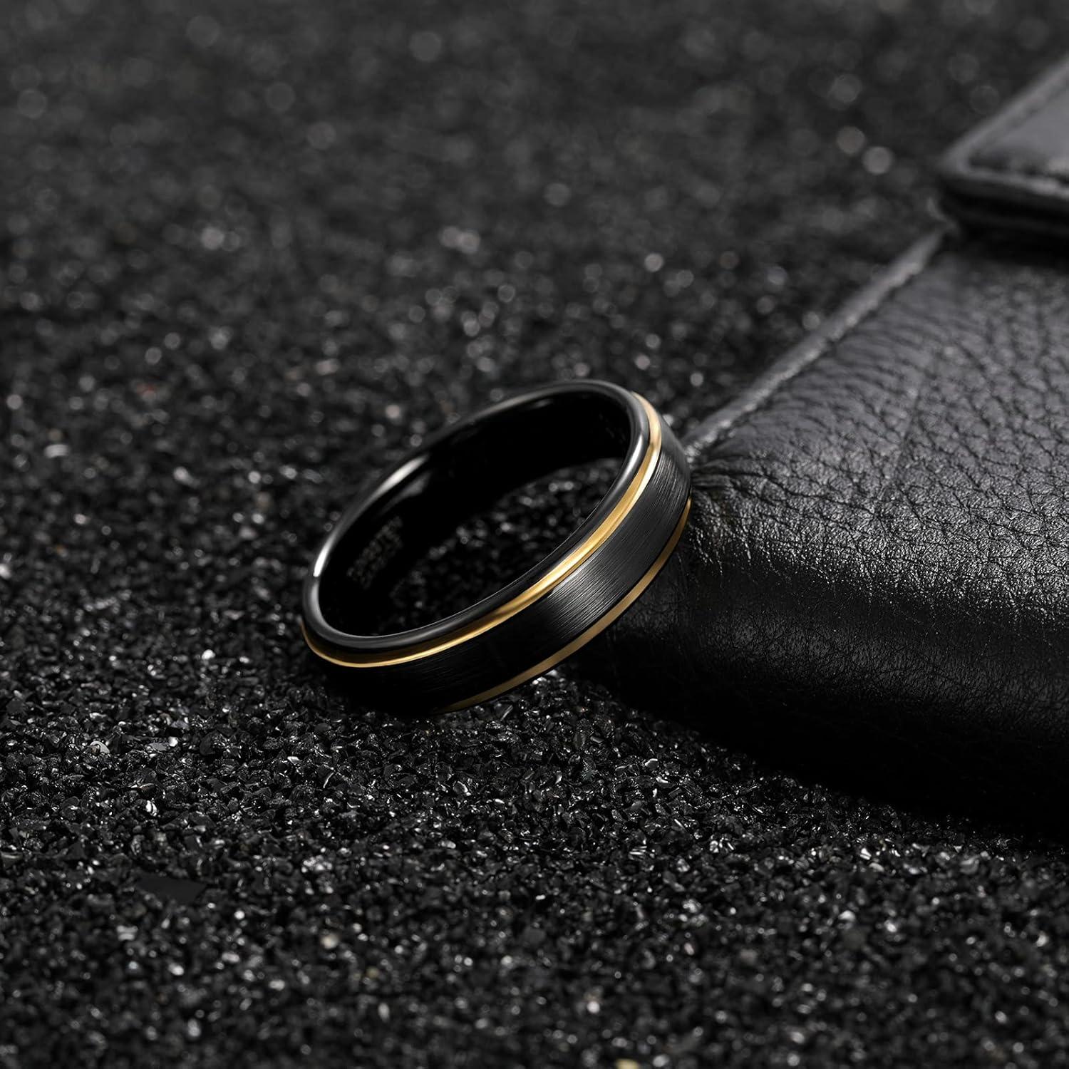TRUMIUM 6mm 8mm Tungsten Rings for Men Women Black Wedding Band 24K Gold Plated/Rose Gold Plated Step Edges Comfort Fit Size 6-13(6mm 24k gold plated)
