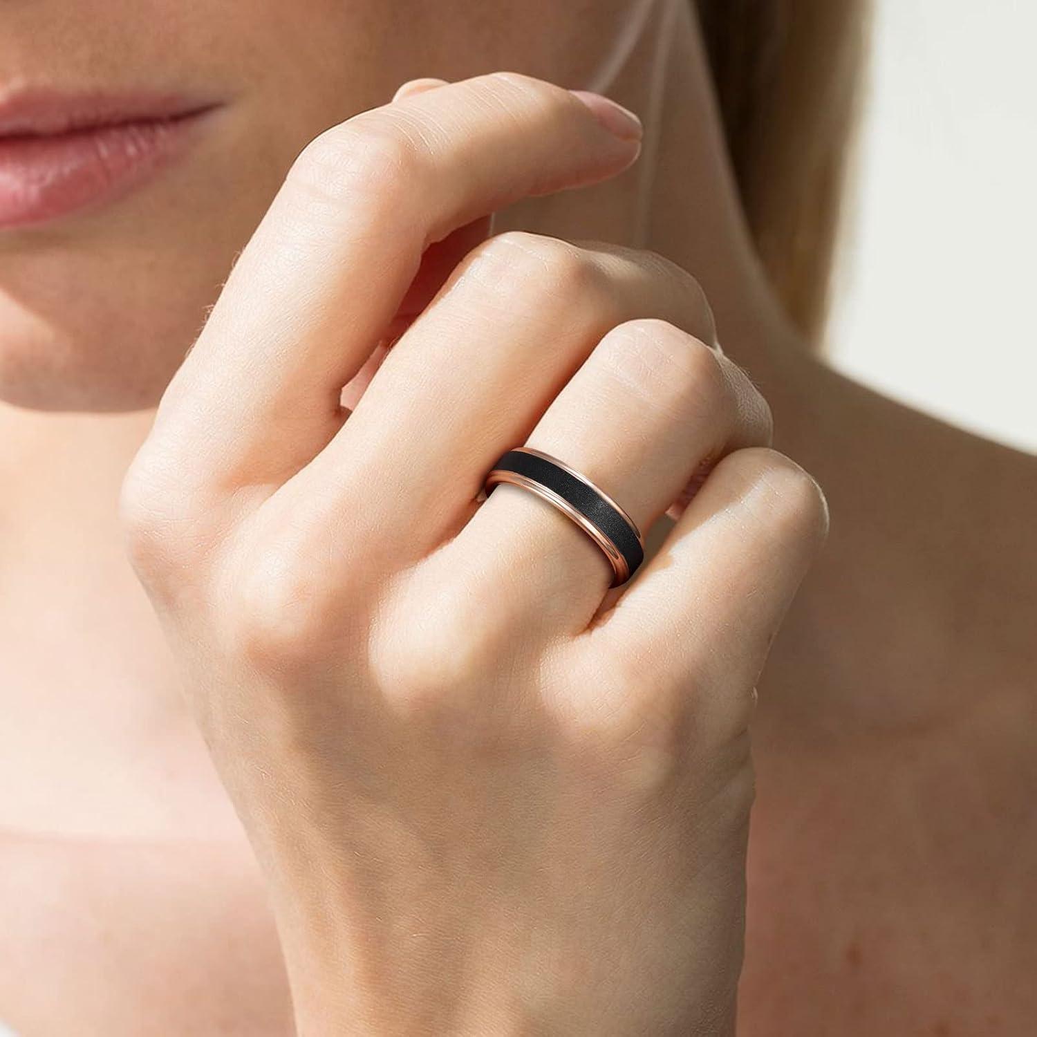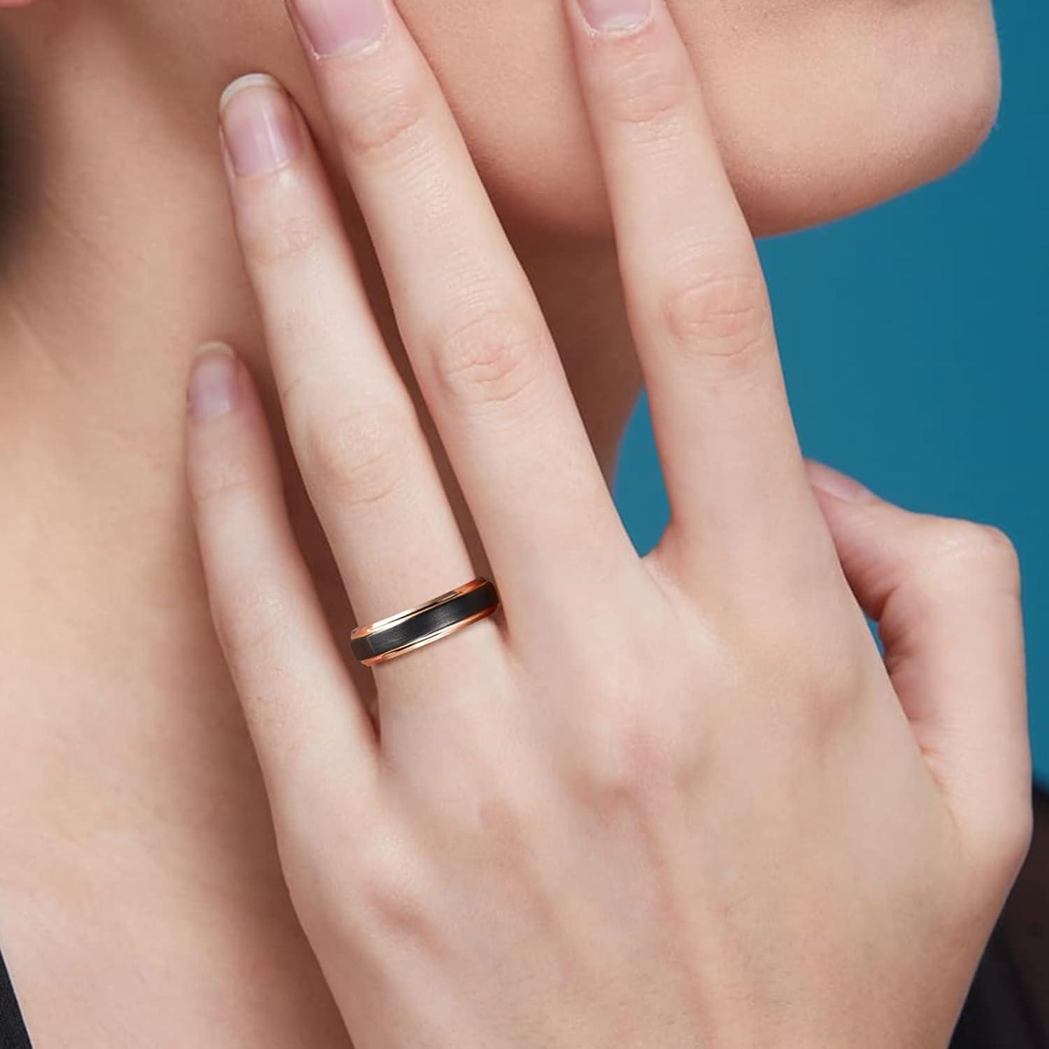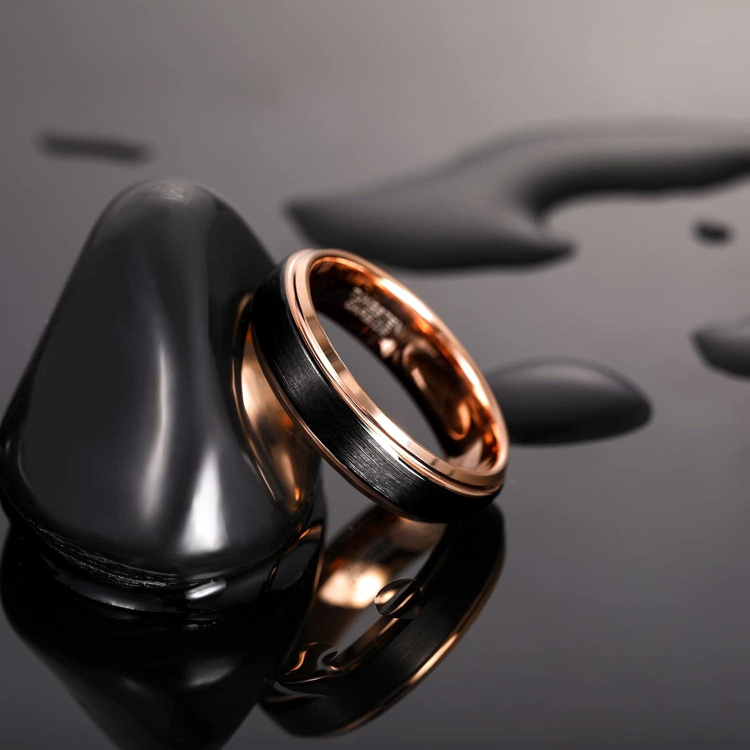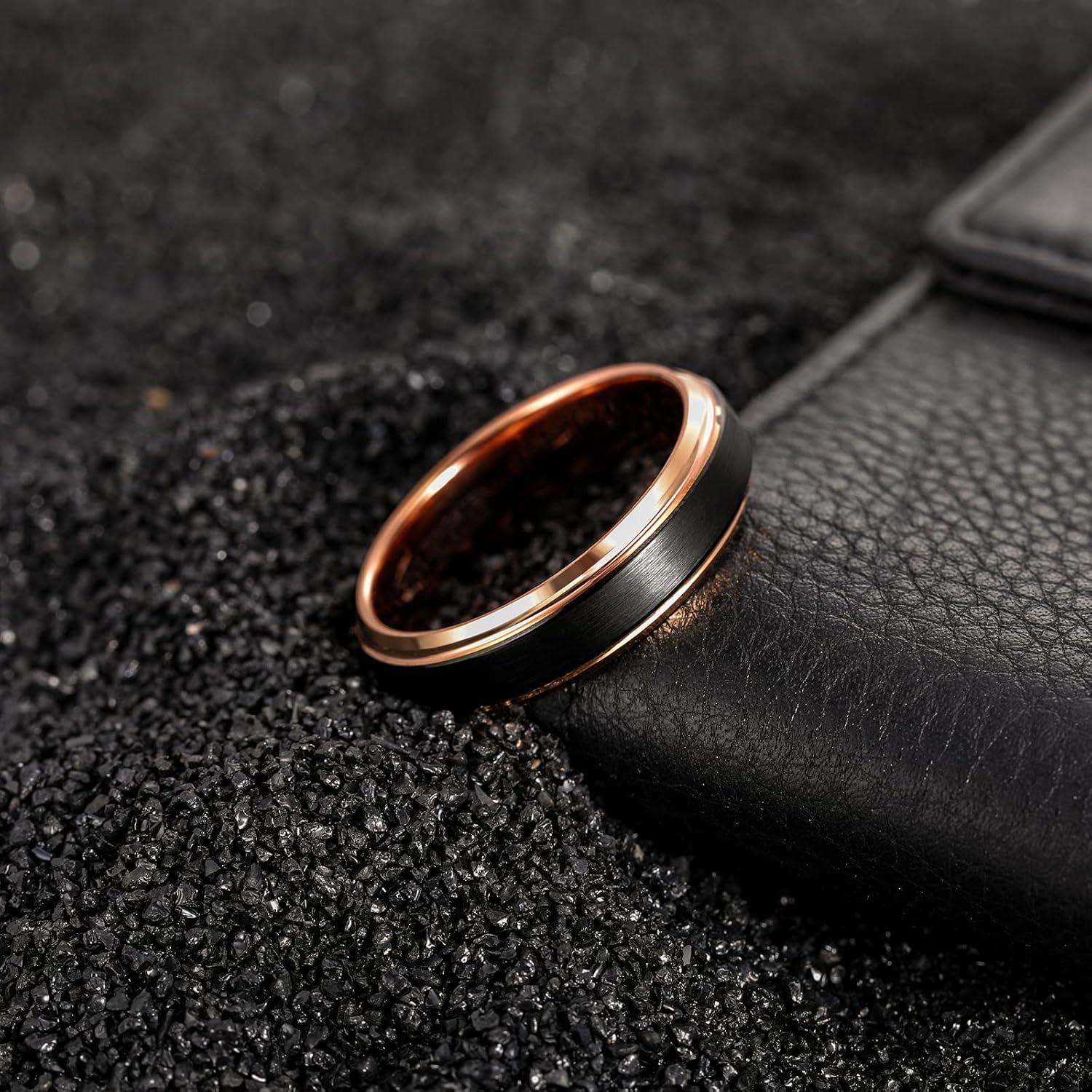 TRUMIUM 6mm 8mm Tungsten Rings for Men Women Black Wedding Band 24K Gold Plated/Rose Gold Plated Step Edges Comfort Fit Size 6-13(6mm rose gold plated)