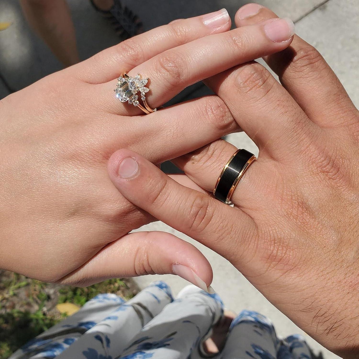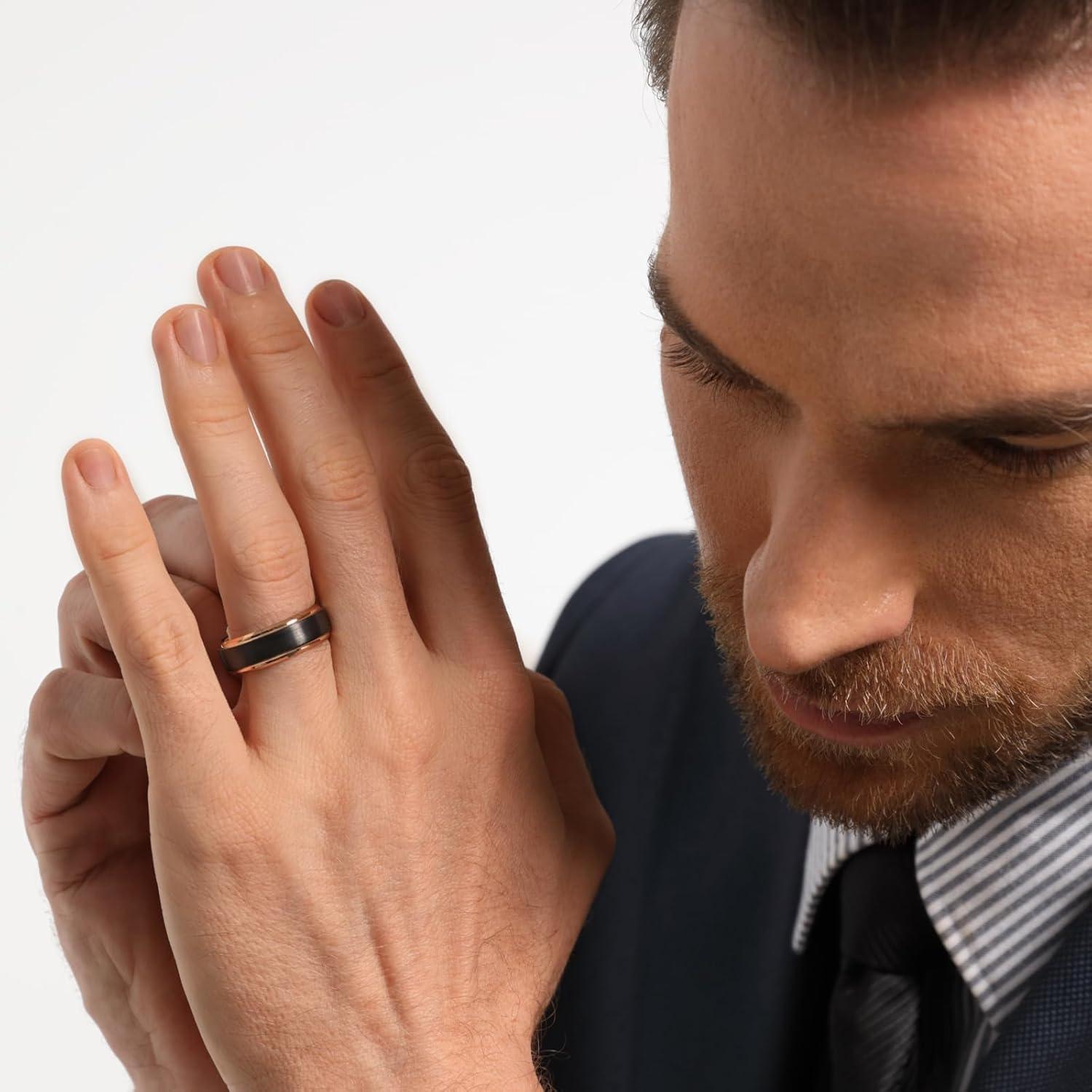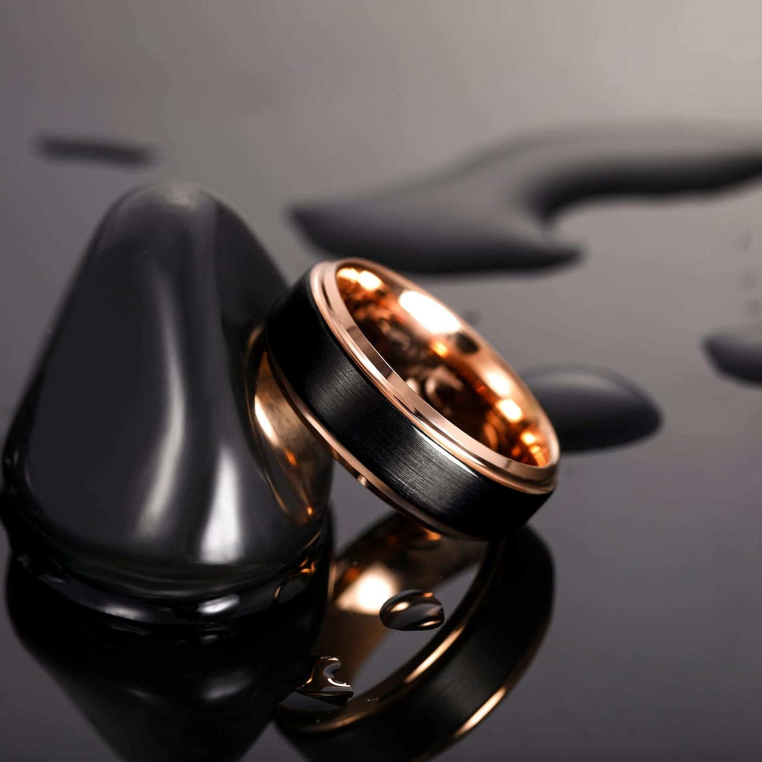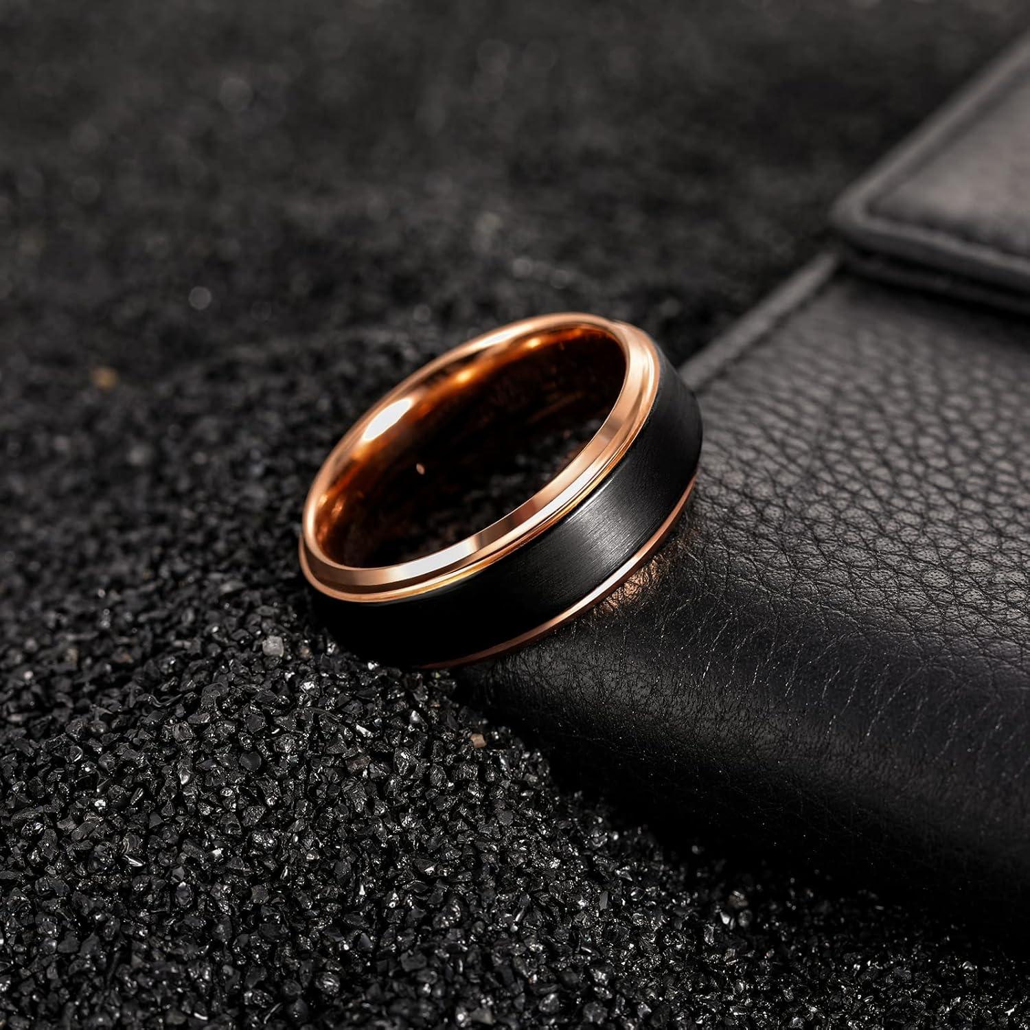 TRUMIUM 6mm 8mm Tungsten Rings for Men Women Black Wedding Band 24K Gold Plated/Rose Gold Plated Step Edges Comfort Fit Size 6-13(8mm rose gold plated)