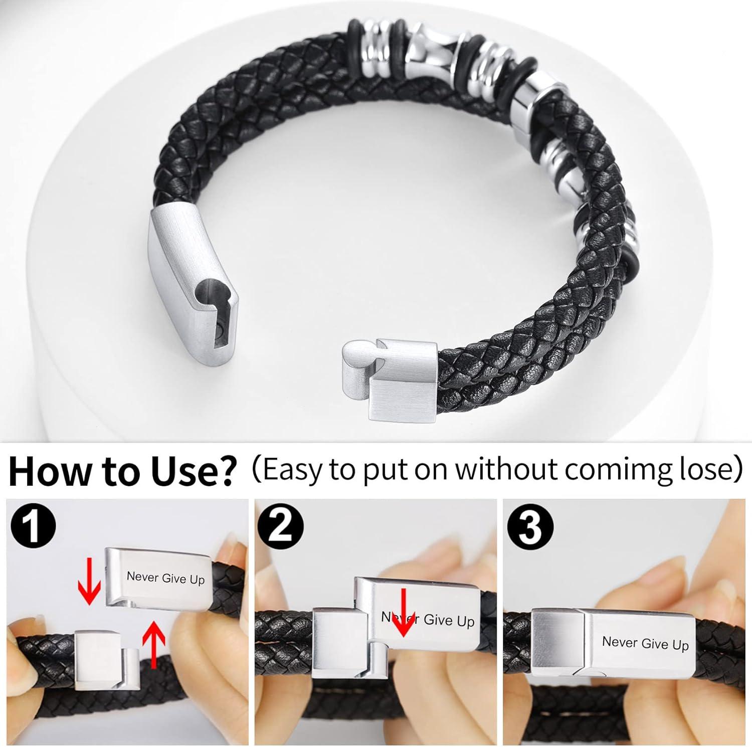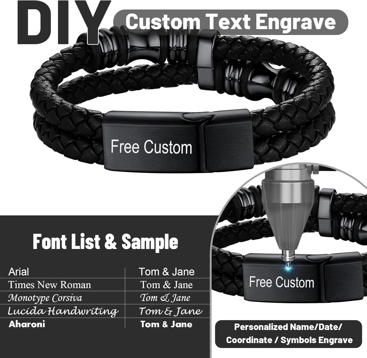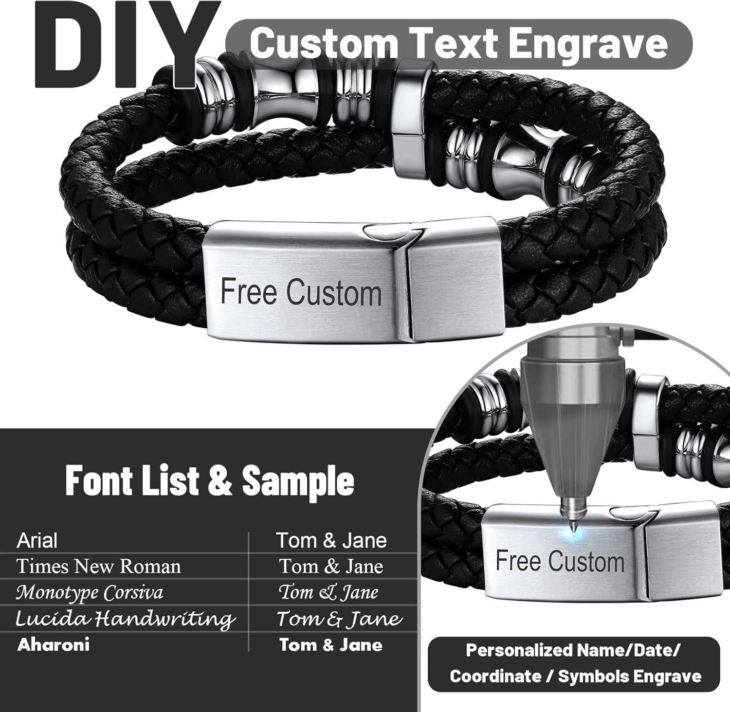 ChainsHouse Mens Wrap Braided Leather Black Bead Bracelets Bangles, Vintage Star of David/Wing Skull/Templar Cross Genuine Leather Bracelet, Customize Available, Size 7.5/8.3/9.0 Inch, Send Gift Box(B: Double Braided-Steel Clasp-Custom)