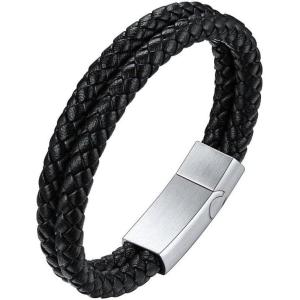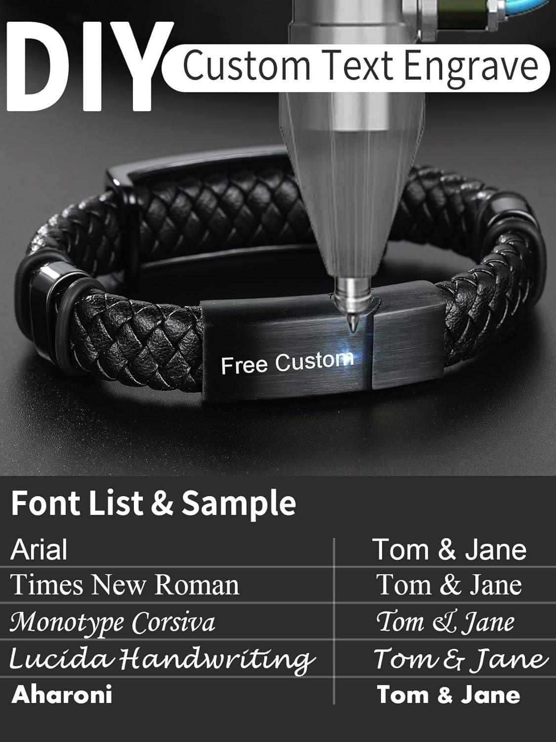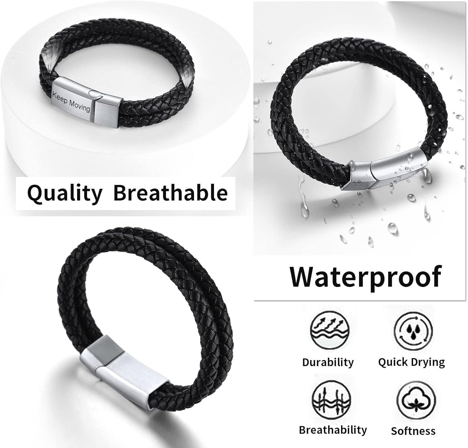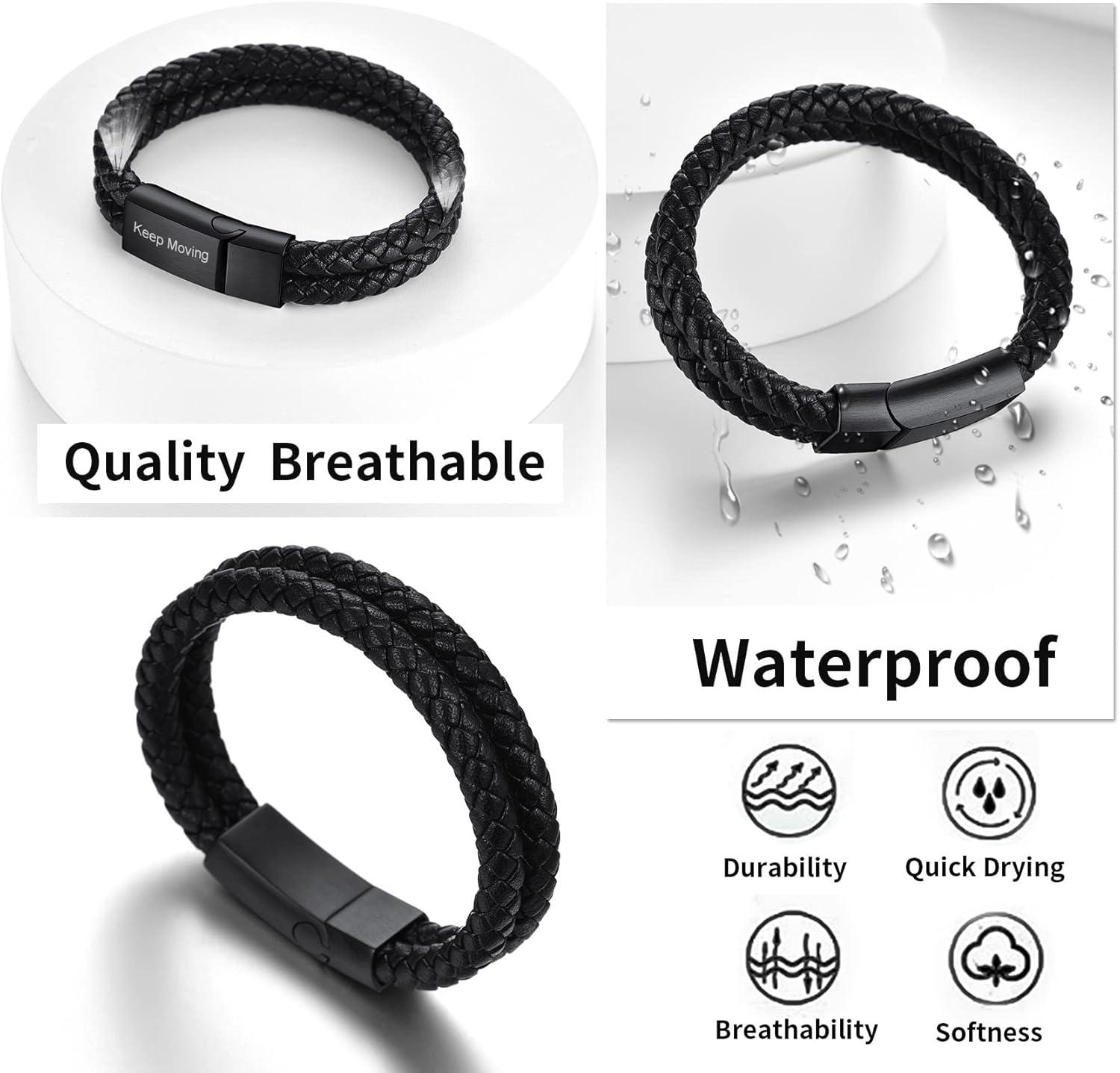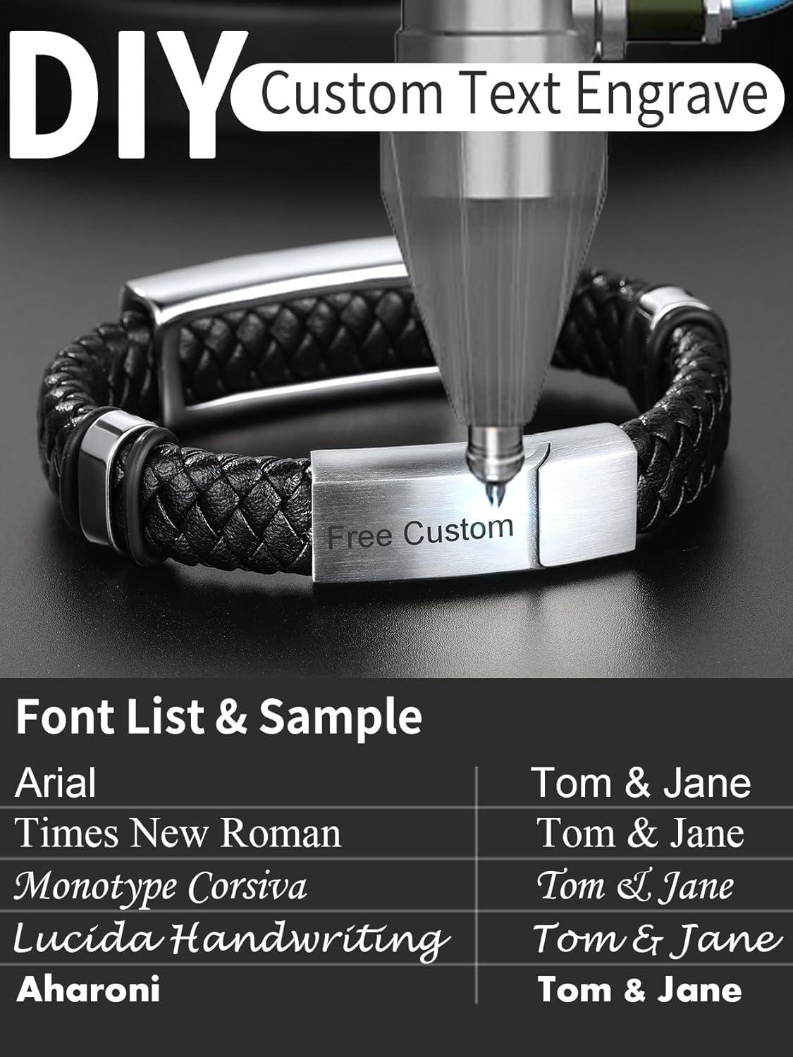 ChainsHouse Mens Wrap Braided Leather Black Bead Bracelets Bangles, Vintage Star of David/Wing Skull/Templar Cross Genuine Leather Bracelet, Customize Available, Size 7.5/8.3/9.0 Inch, Send Gift Box(B: Double Braided-Steel Clasp-Custom)