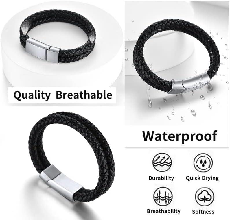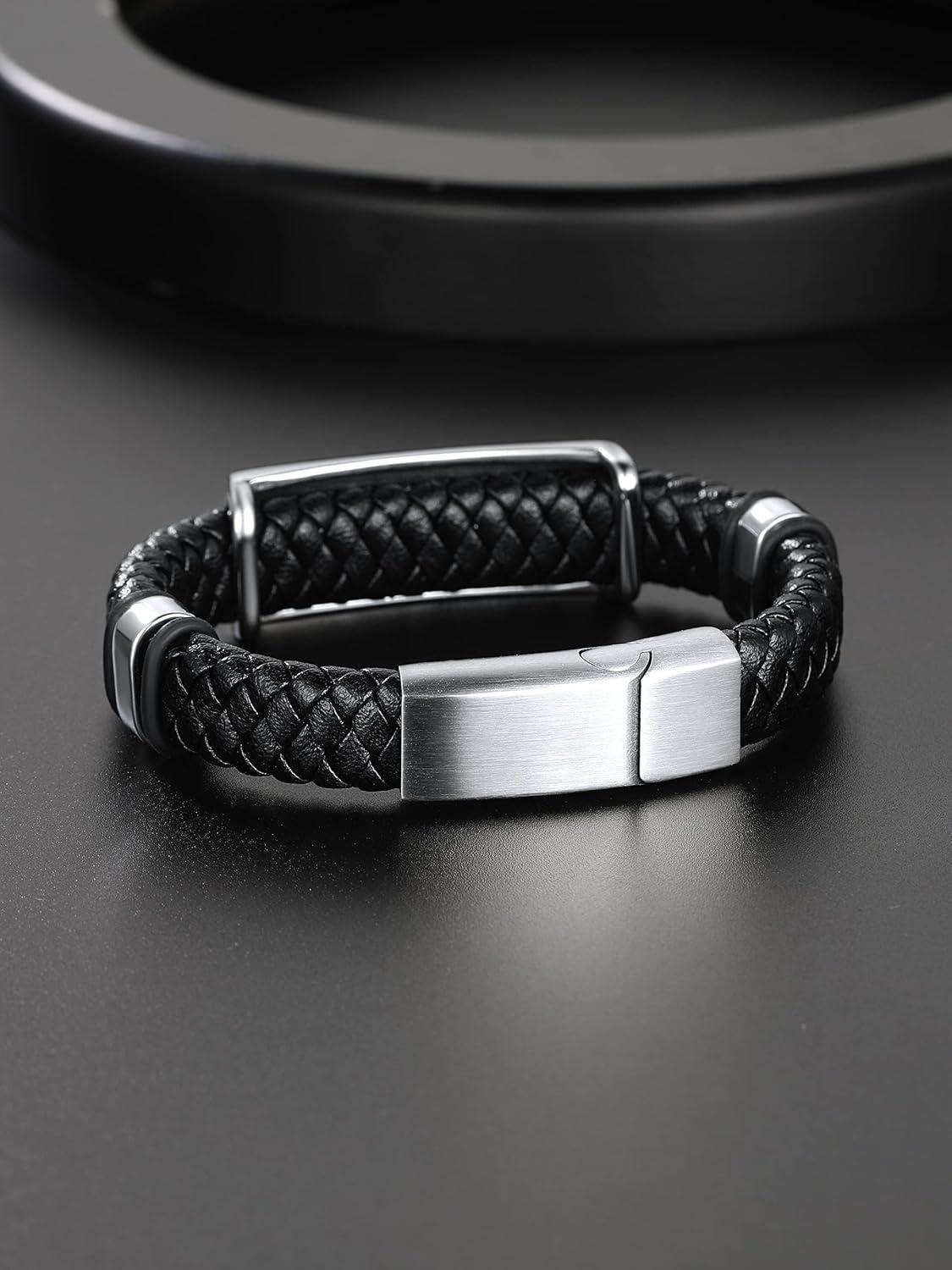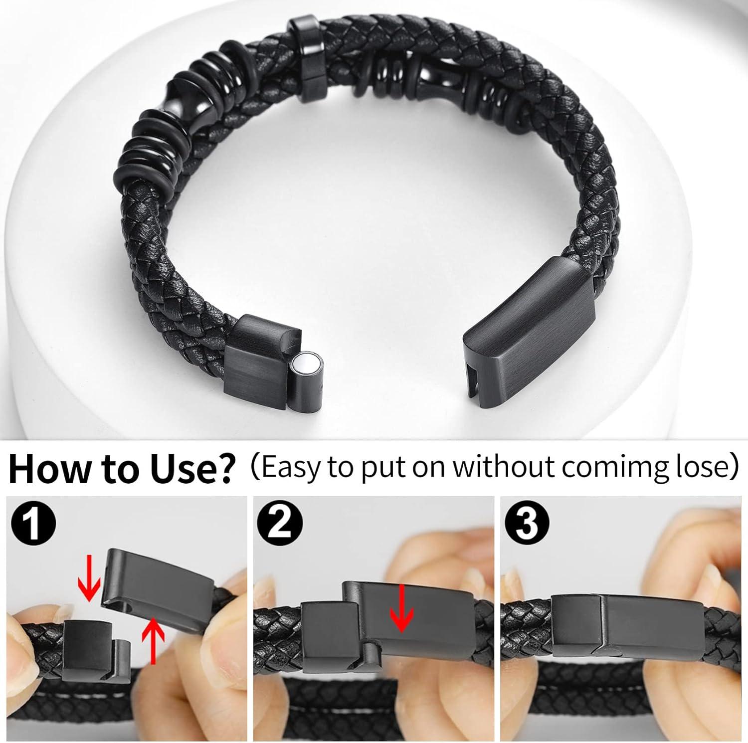 ChainsHouse Mens Wrap Braided Leather Black Bead Bracelets Bangles, Vintage Star of David/Wing Skull/Templar Cross Genuine Leather Bracelet, Customize Available, Size 7.5/8.3/9.0 Inch, Send Gift Box(A: Double Braided-Steel Clasp)