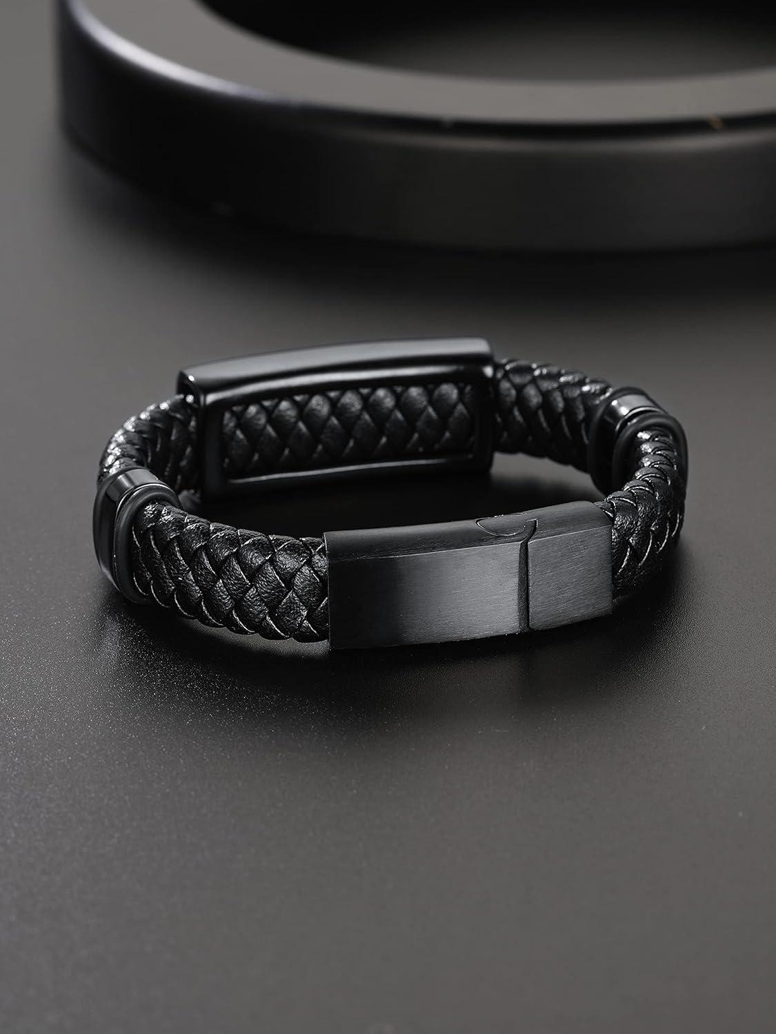 ChainsHouse Mens Wrap Braided Leather Black Bead Bracelets Bangles, Vintage Star of David/Wing Skull/Templar Cross Genuine Leather Bracelet, Customize Available, Size 7.5/8.3/9.0 Inch, Send Gift Box(B: Bead-Steel Clasp-Custom)