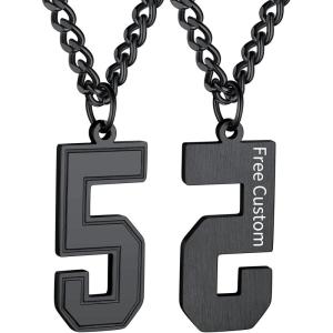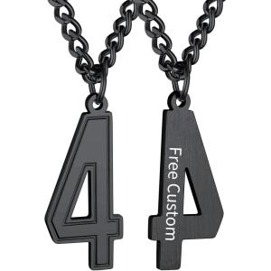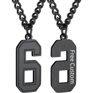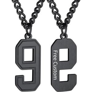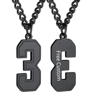 ChainsHouse Men 0-9 Jersey Number Necklace, Custom Necklace Baseball/Basketball/Football with Number, Personalized Number Pendant Stainless Steel Chain Sports Necklaces for Men Women, with Gift Box(01~99 Number & Name Custom-Black)