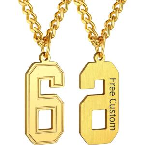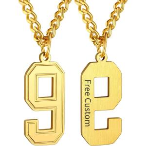 ChainsHouse Men 0-9 Jersey Number Necklace, Custom Necklace Baseball/Basketball/Football with Number, Personalized Number Pendant Stainless Steel Chain Sports Necklaces for Men Women, with Gift Box(01~99 Number & Name Custom-Gold)