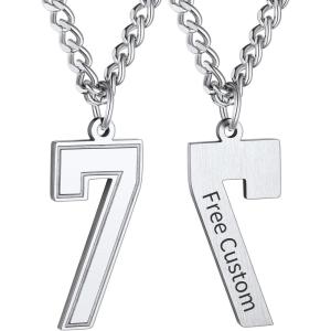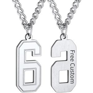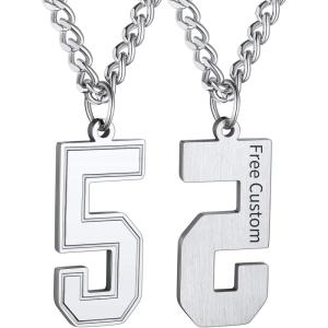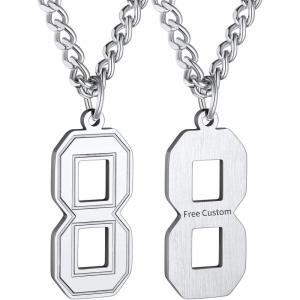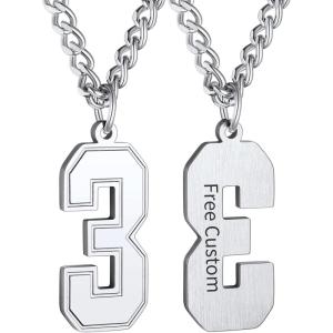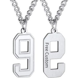 ChainsHouse Men 0-9 Jersey Number Necklace, Custom Necklace Baseball/Basketball/Football with Number, Personalized Number Pendant Stainless Steel Chain Sports Necklaces for Men Women, with Gift Box(01~99 Number & Name Custom-Steel)
