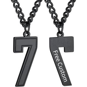 ChainsHouse Men 0-9 Jersey Number Necklace, Custom Necklace Baseball/Basketball/Football with Number, Personalized Number Pendant Stainless Steel Chain Sports Necklaces for Men Women, with Gift Box(Number 7-Black)