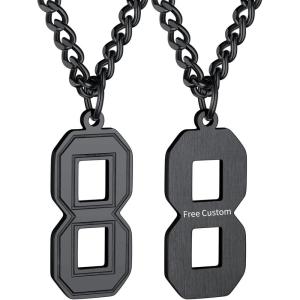ChainsHouse Men 0-9 Jersey Number Necklace, Custom Necklace Baseball/Basketball/Football with Number, Personalized Number Pendant Stainless Steel Chain Sports Necklaces for Men Women, with Gift Box(Number 8-Black)