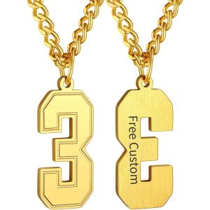 ChainsHouse Men 0-9 Jersey Number Necklace, Custom Necklace Baseball/Basketball/Football with Number, Personalized Number Pendant Stainless Steel Chain Sports Necklaces for Men Women, with Gift Box(001~999 Number & Name Custom-Gold)