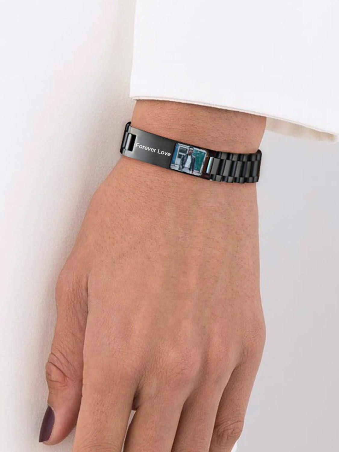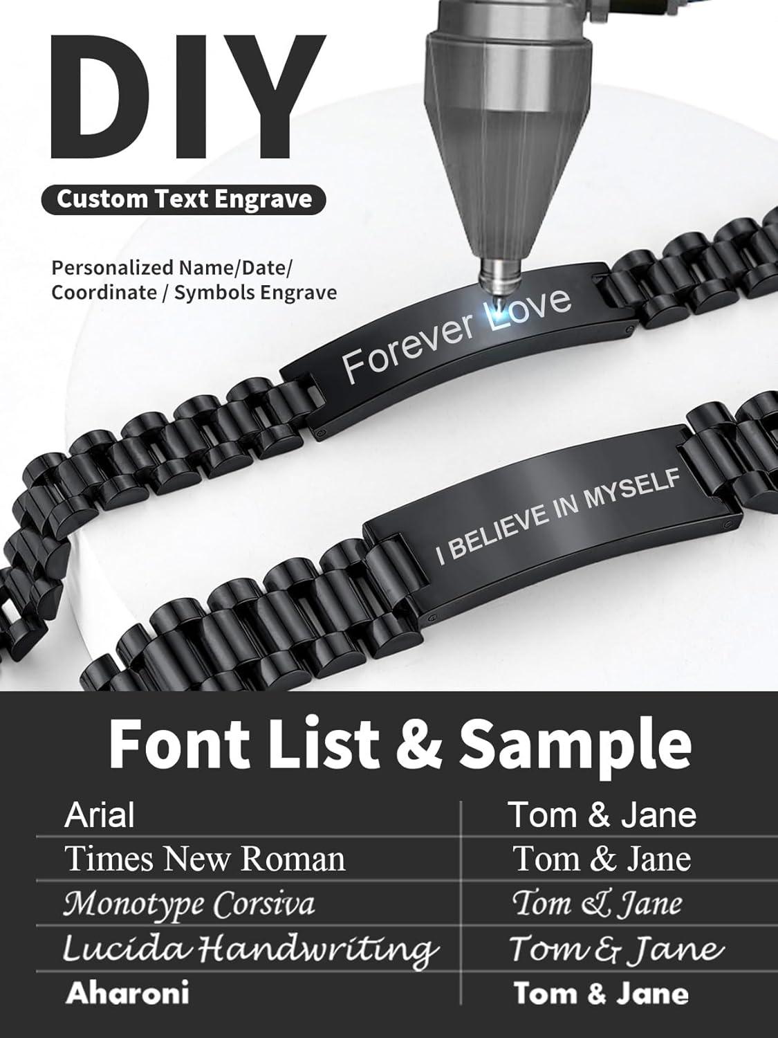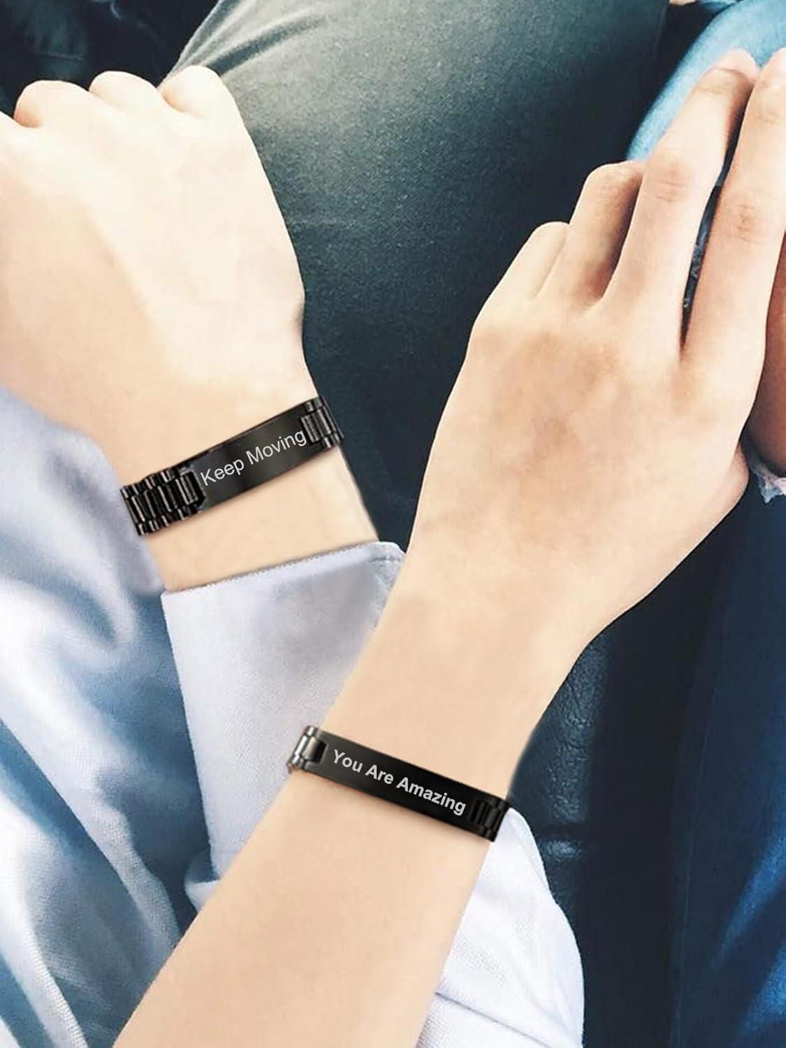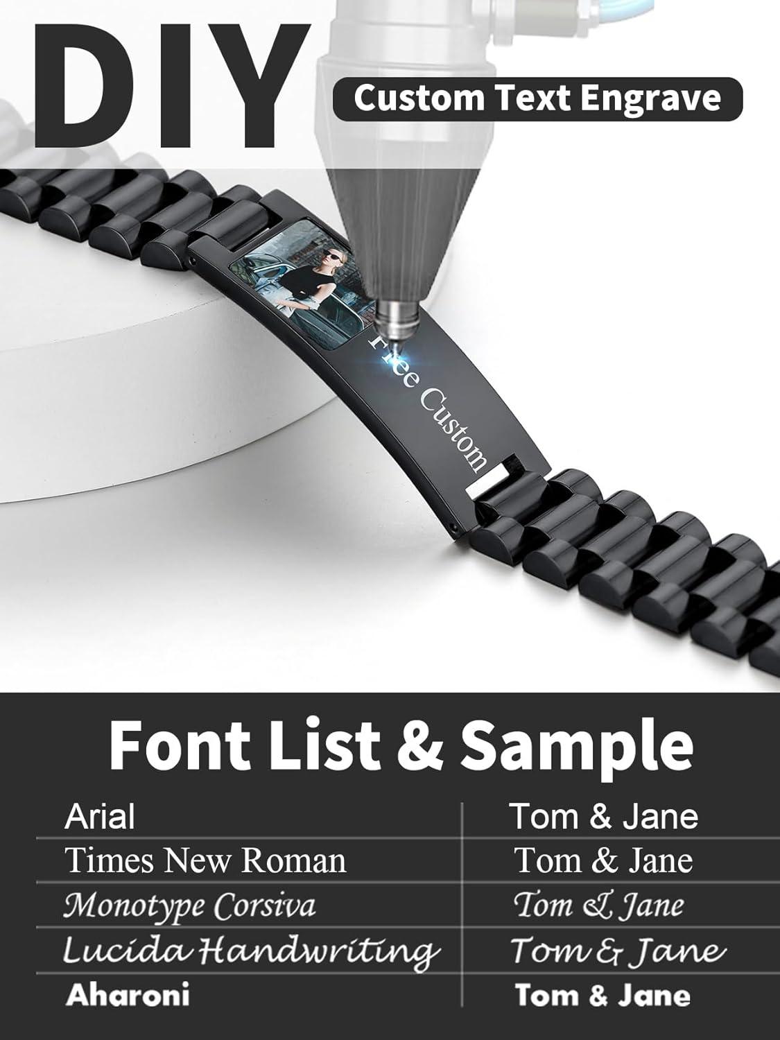 ChainsHouse Personalized ID Bracelet for Men Women Stainless Steel Cuban Curb Link Chain Custom Engrave Bar Bracelet Bangle, 7mm Width, 19-21CM, Send Gift Box(B: Black-15MM-Photo)