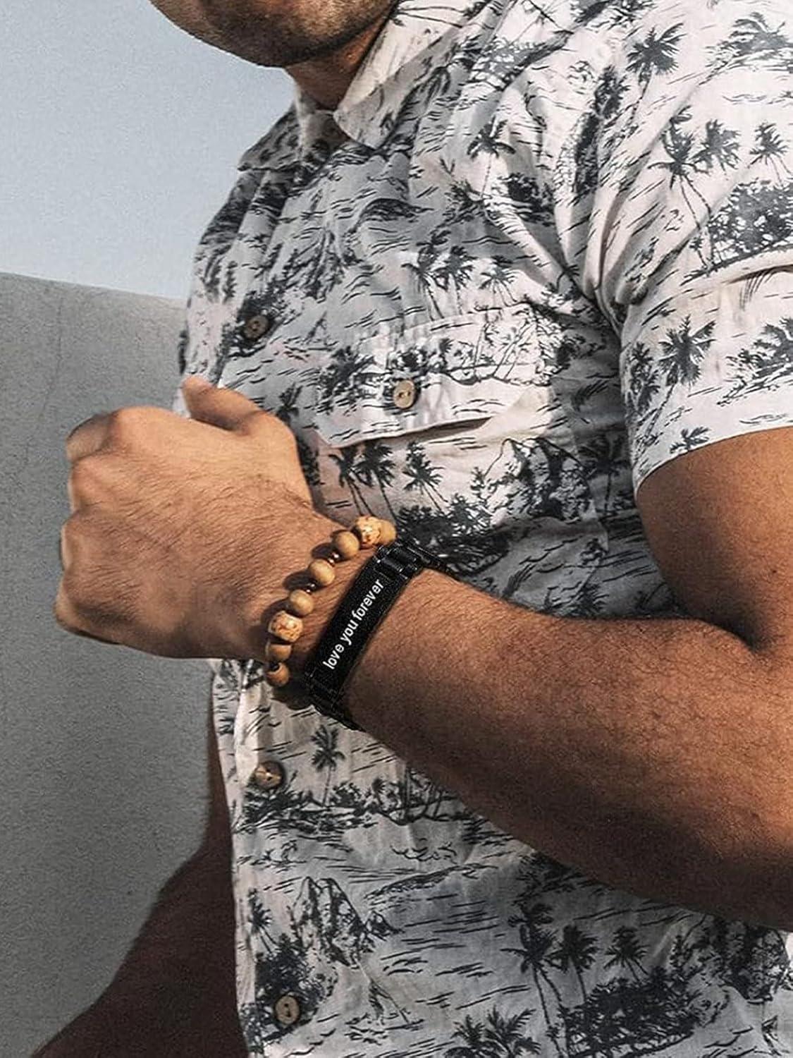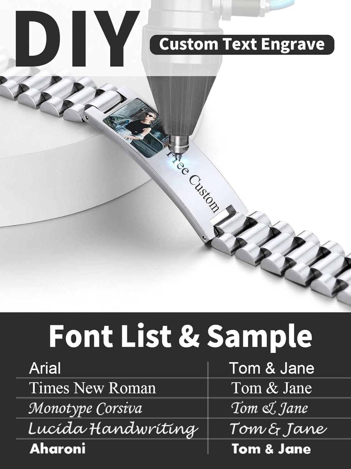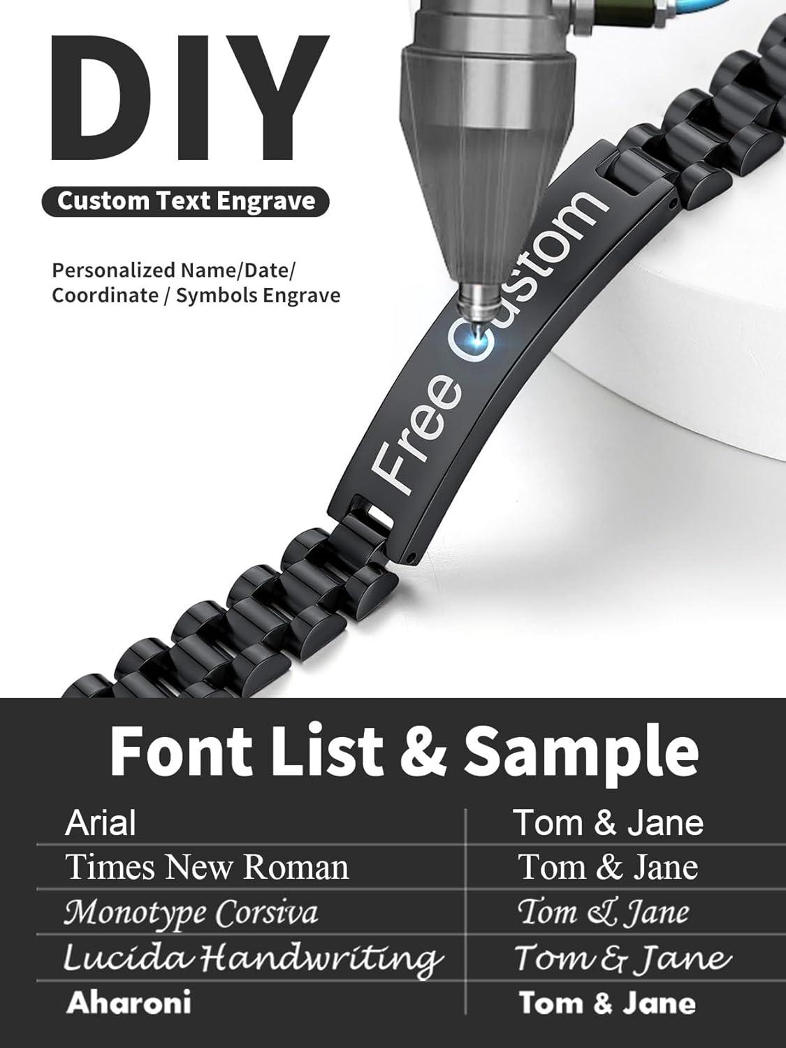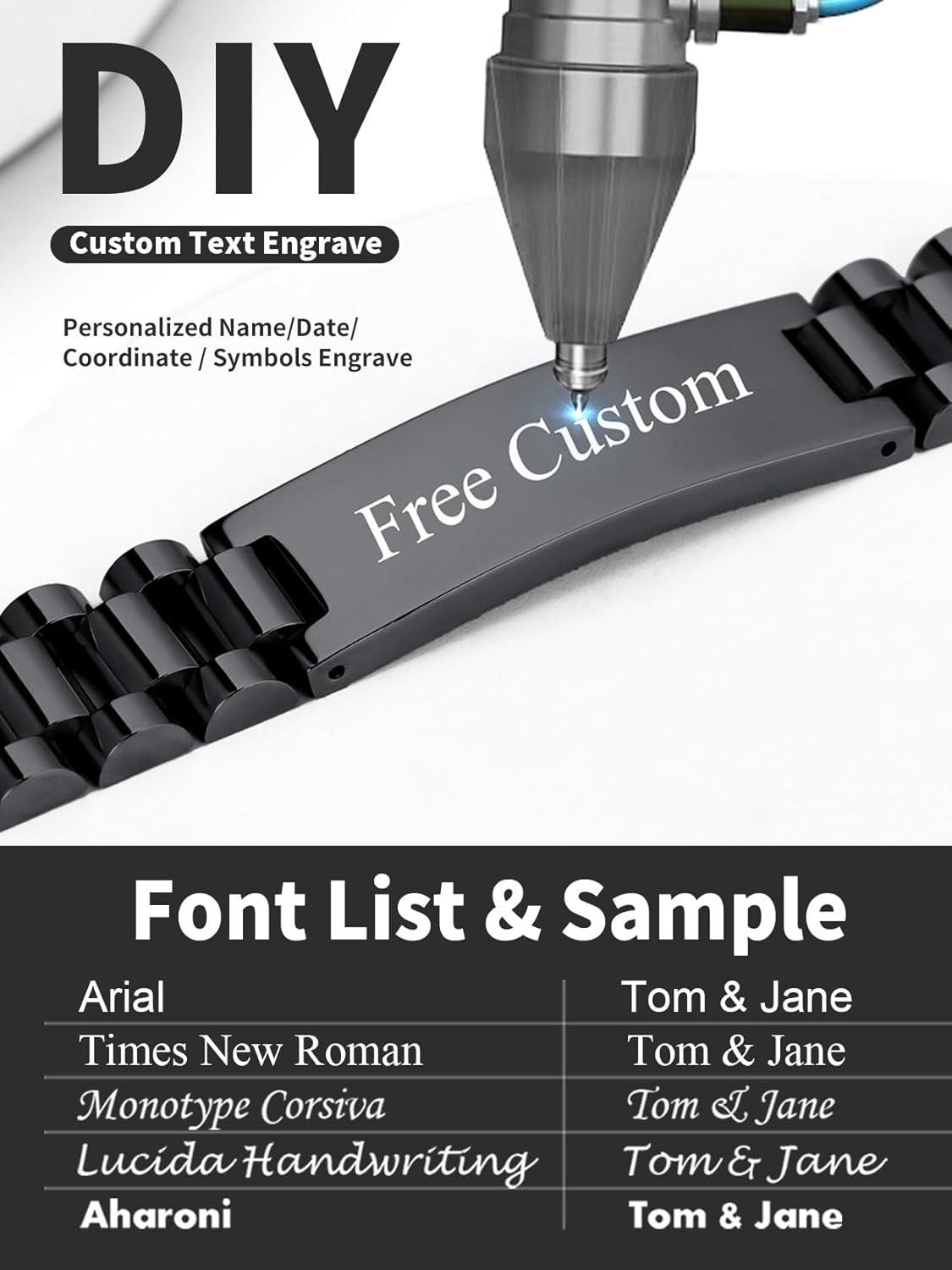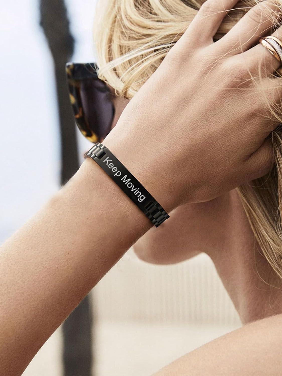 ChainsHouse Personalized ID Bracelet for Men Women Stainless Steel Cuban Curb Link Chain Custom Engrave Bar Bracelet Bangle, 7mm Width, 19-21CM, Send Gift Box(B: Black-15MM-Photo)