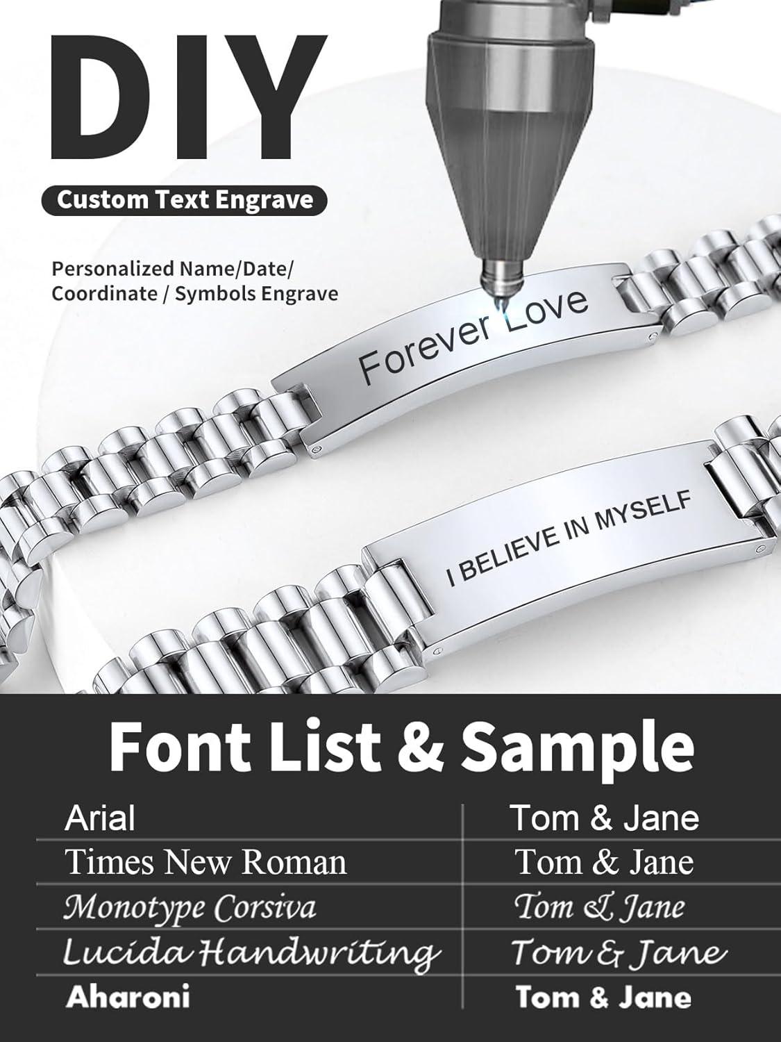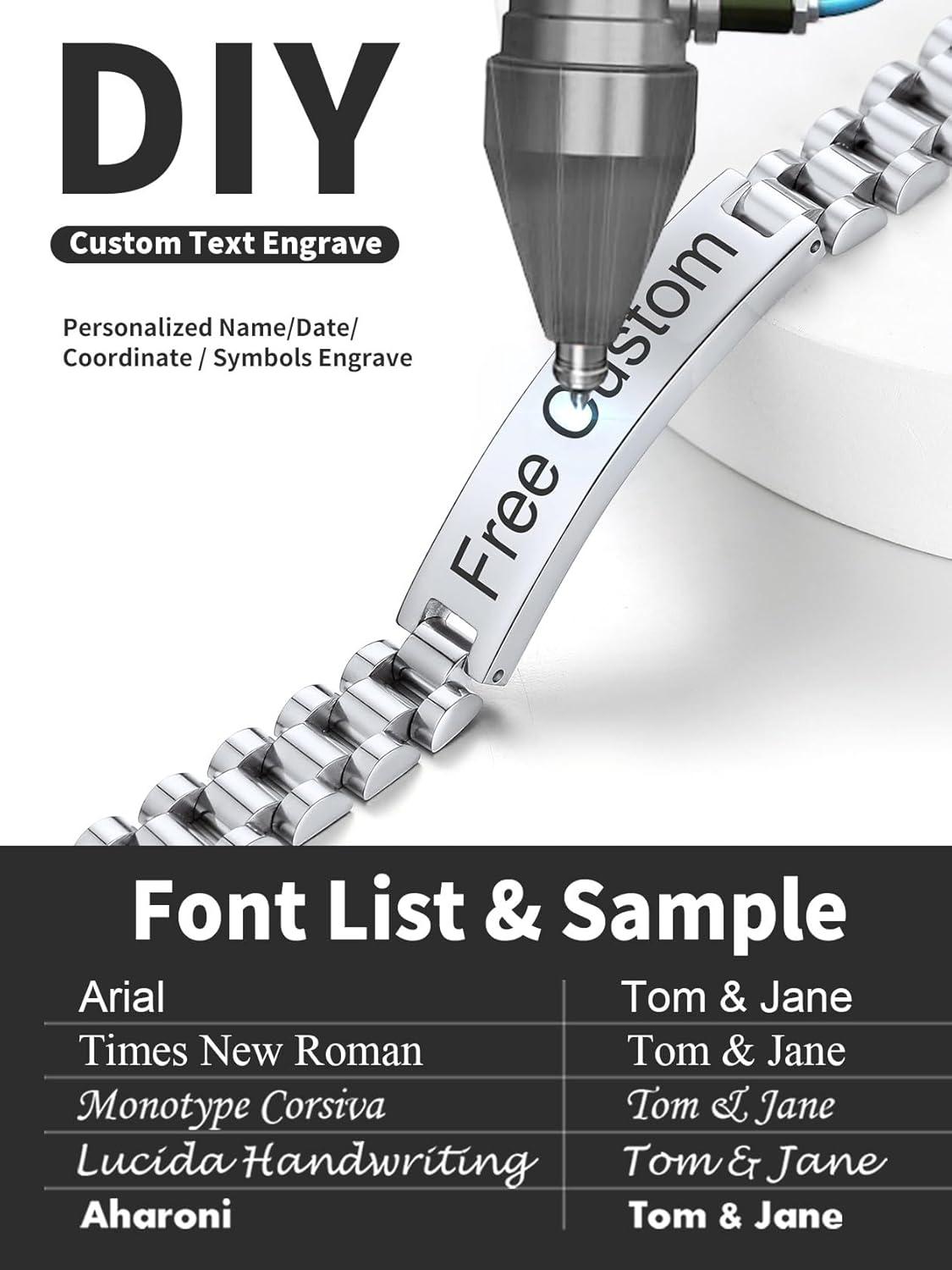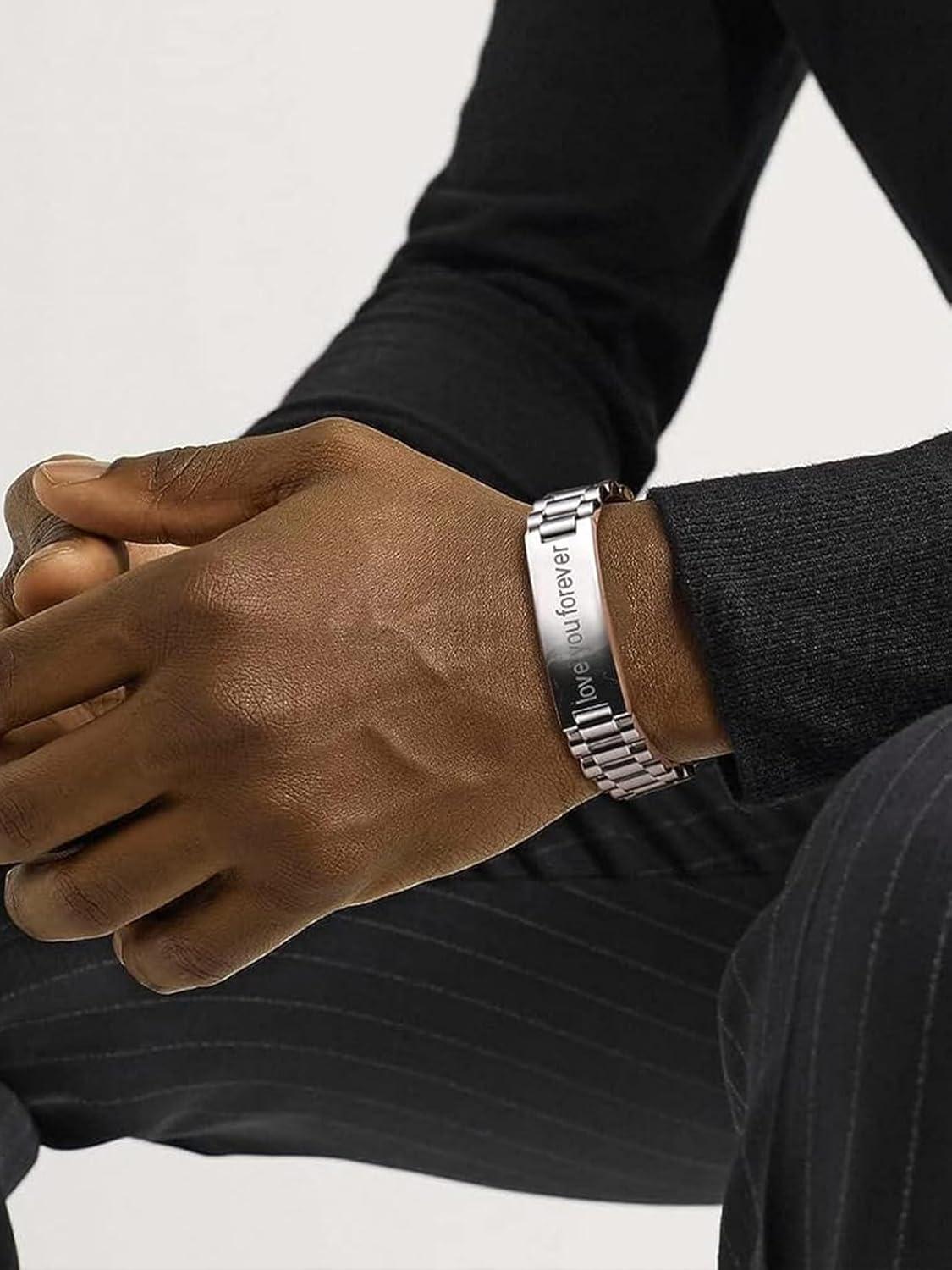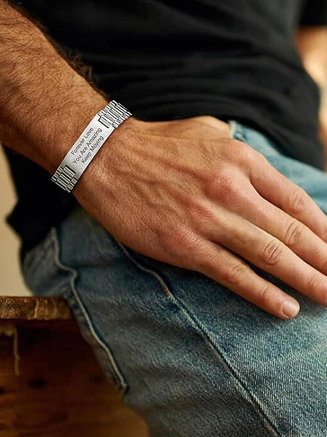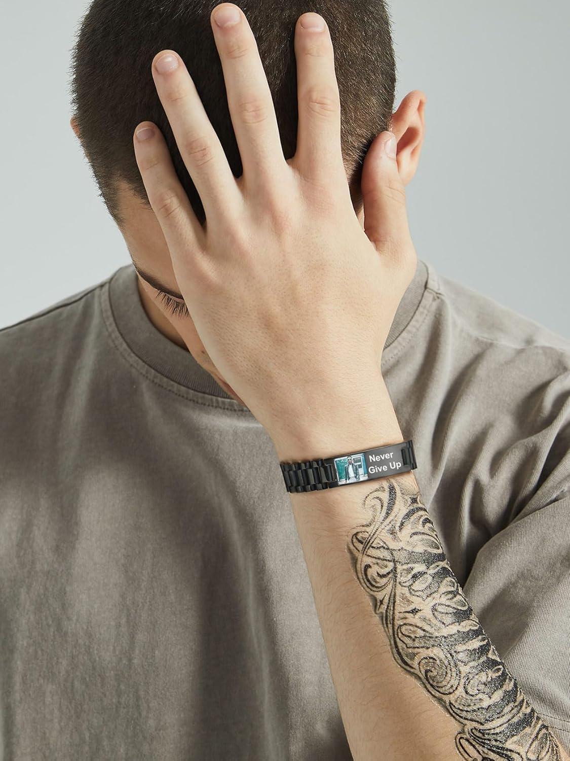 ChainsHouse Wristband ID Bracelets for Men, Stainless Steel/18K Gold/Black Metal Plated, Personalized Engrave Chunky Bracelet Bangle, with Removal Tool, 15MM/15.5MM Width, 8.27-8.66 Inch Length(j. 10mm width-Steel-Custom)