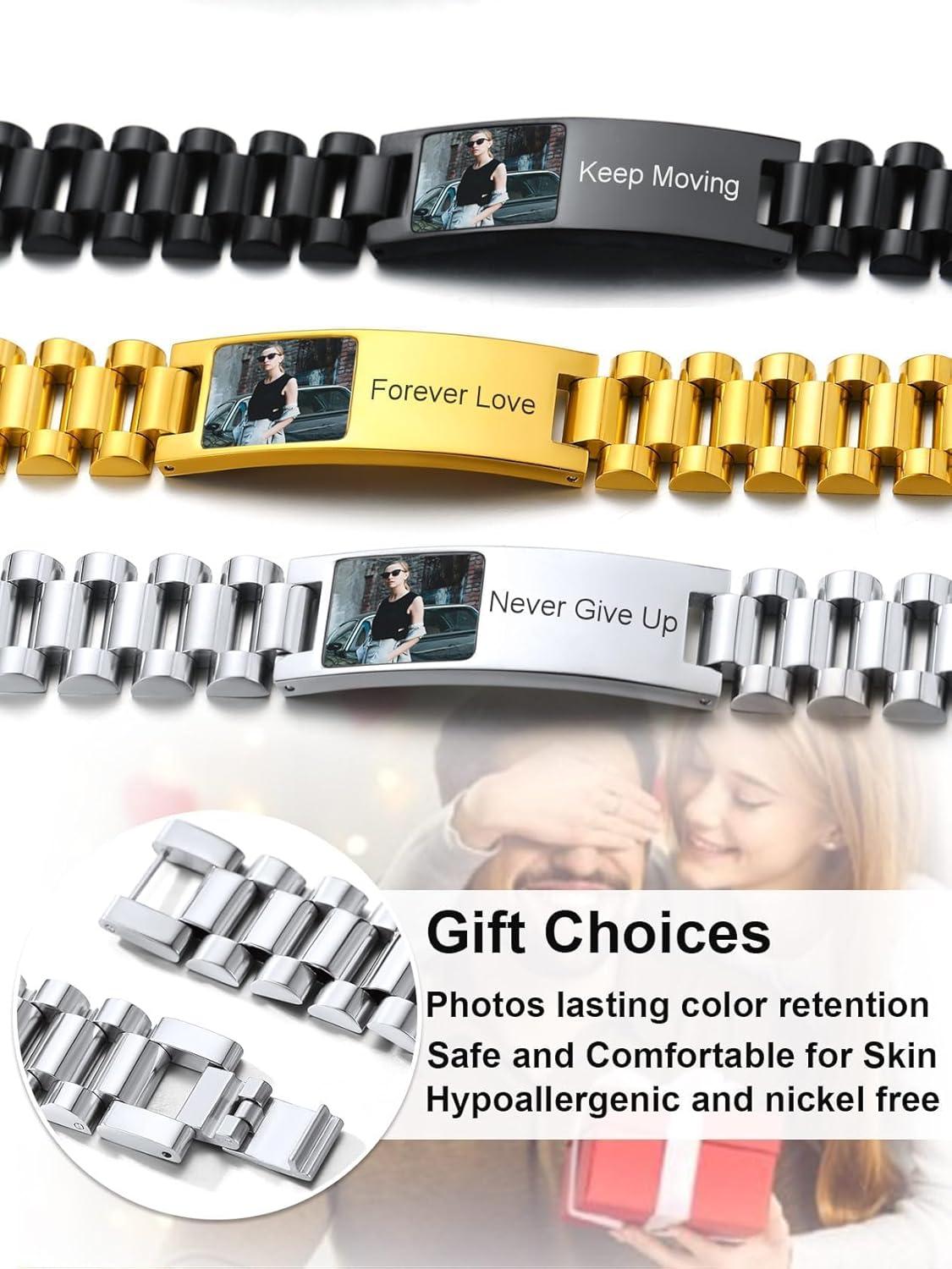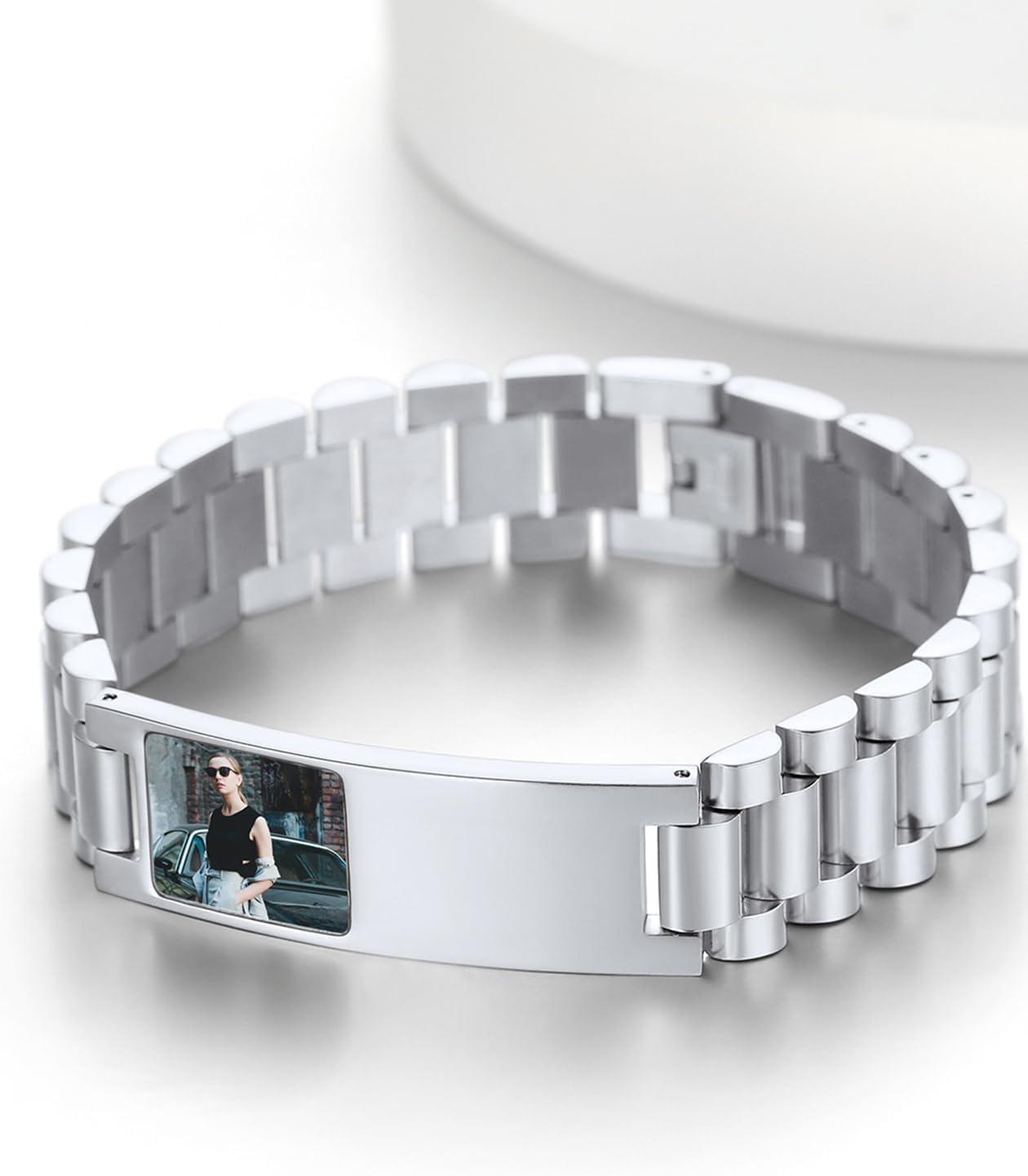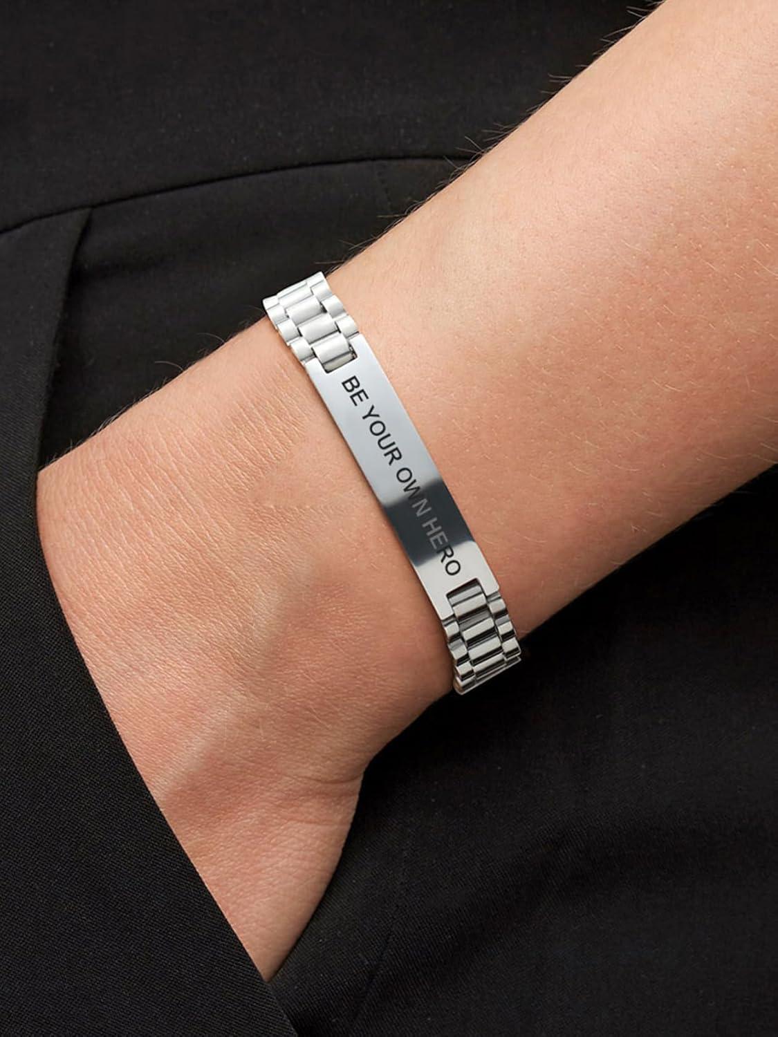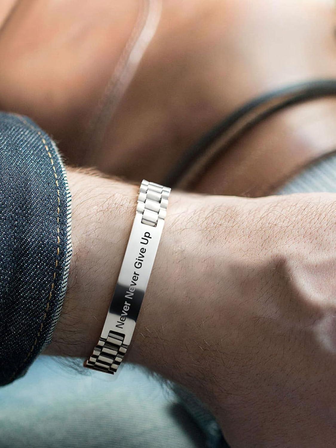 ChainsHouse Wristband ID Bracelets for Men, Stainless Steel/18K Gold/Black Metal Plated, Personalized Engrave Chunky Bracelet Bangle, with Removal Tool, 15MM/15.5MM Width, 8.27-8.66 Inch Length(j. 10mm width-Steel-Custom)