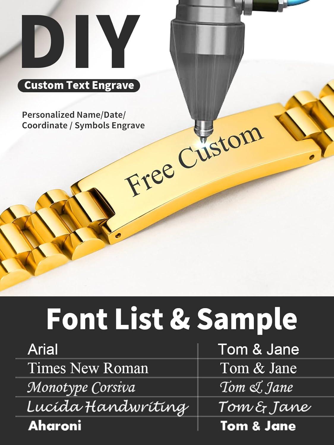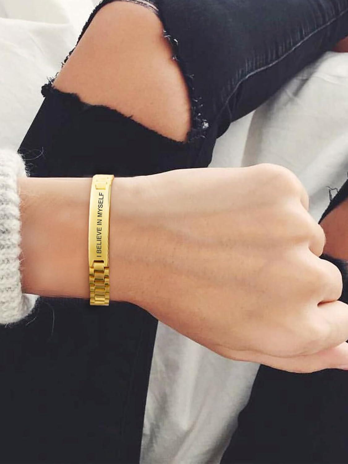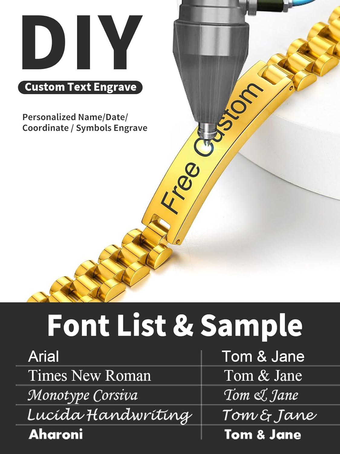 ChainsHouse Wristband ID Bracelets for Men, Stainless Steel/18K Gold/Black Metal Plated, Personalized Engrave Chunky Bracelet Bangle, with Removal Tool, 15MM/15.5MM Width, 8.27-8.66 Inch Length(u. A Set-Gold-Cutom)