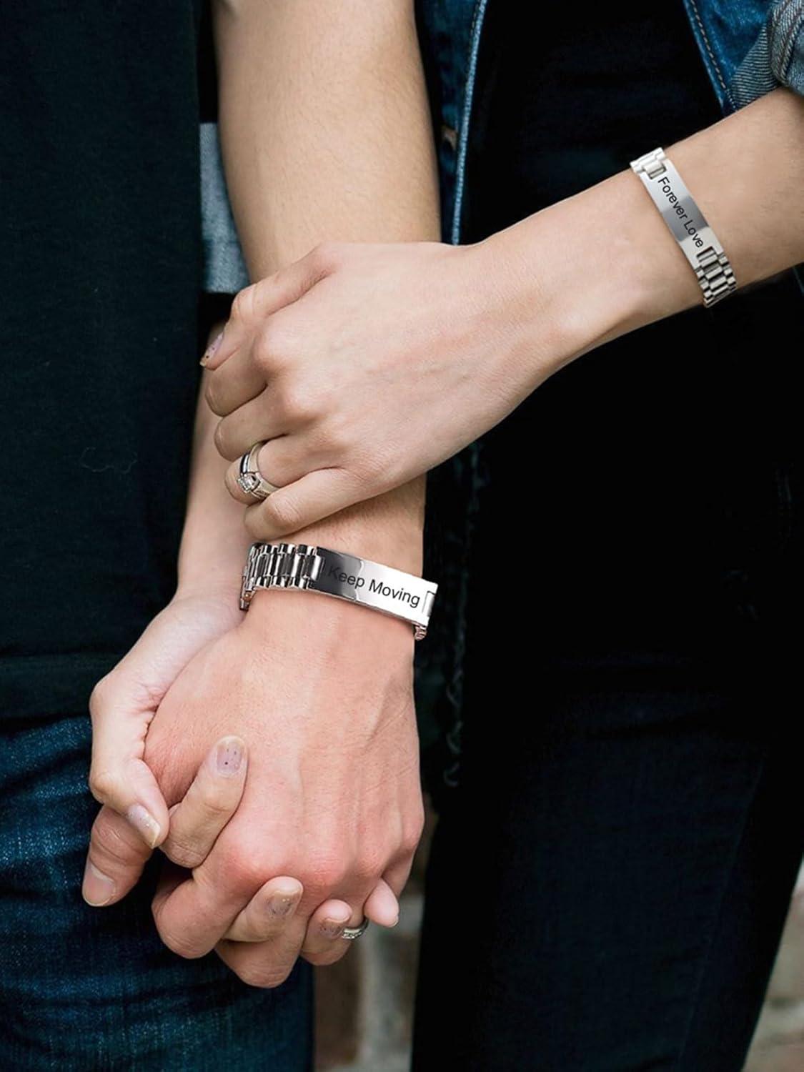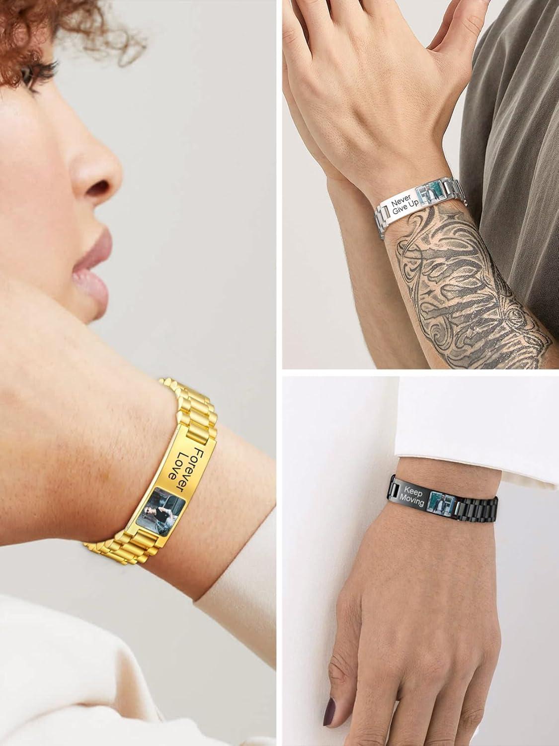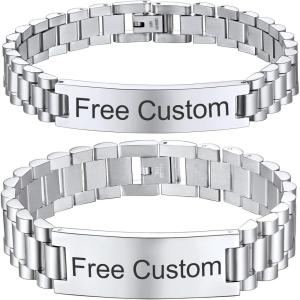 ChainsHouse Wristband ID Bracelets for Men, Stainless Steel/18K Gold/Black Metal Plated, Personalized Engrave Chunky Bracelet Bangle, with Removal Tool, 15MM/15.5MM Width, 8.27-8.66 Inch Length(s. A Set-Steel-Cutom)
